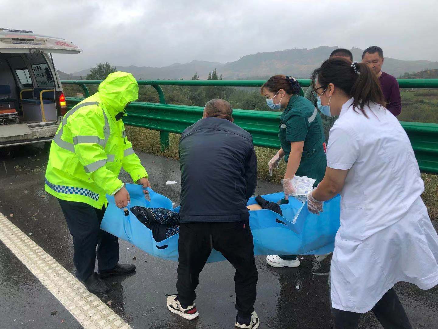 120救护车赶到后路政人员配合救护人员把伤者抬到救护车上。随后救援公司将事故车辆拖离高速公路,及时清理道路上汽车撞毁的零件。
