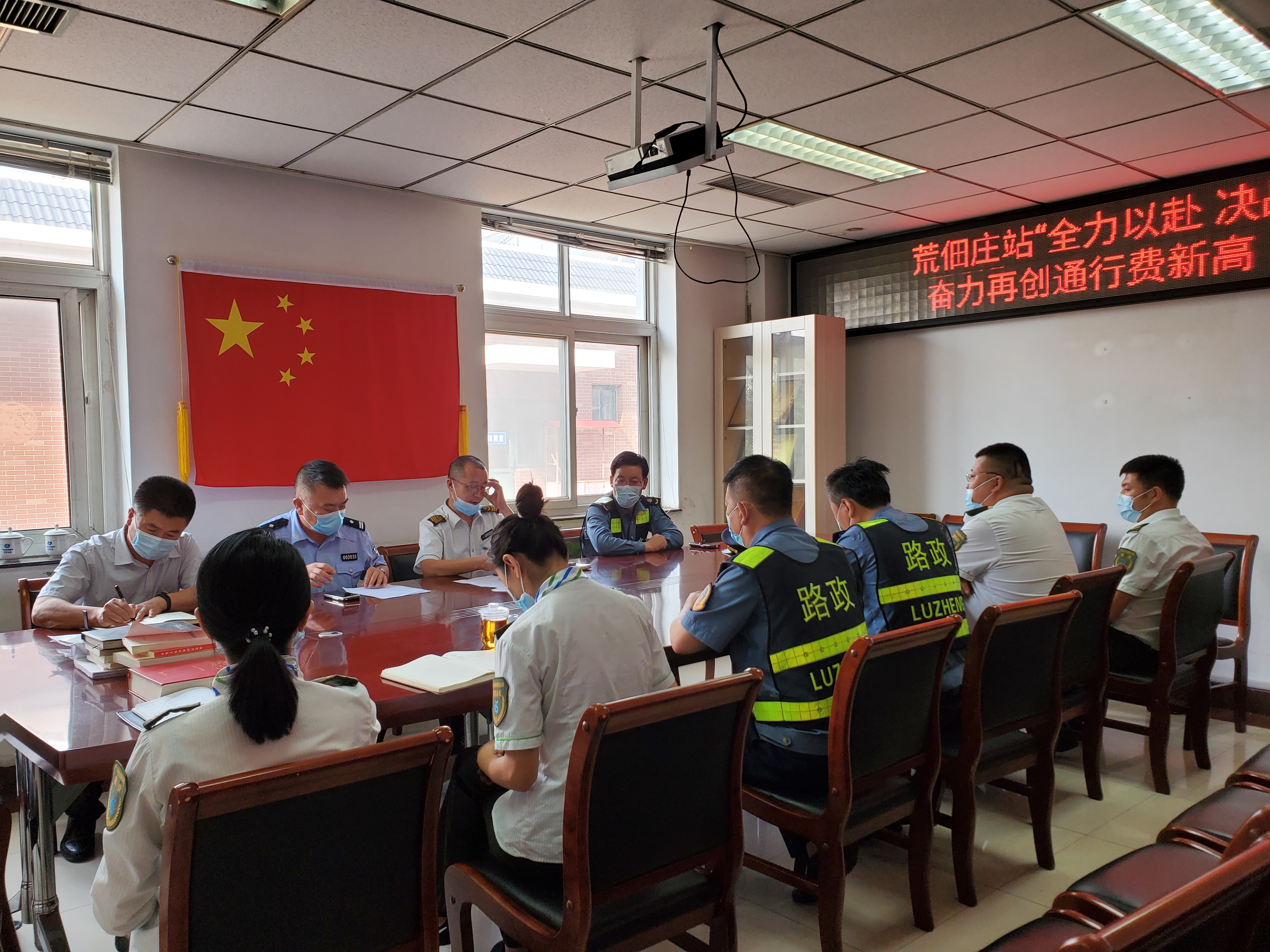 会议上,荒佃庄收费站的曾贤站长首先就2021年以来沿海公司和荒佃庄收费站通行费的收缴情况进行了介绍,并传达了沿海公司保任务、促增收、大干一百天收费工作实施方案;高速交警机场大队的毕磊大队长就路面车流量、交通管控、分流预警、危化品监管等事项进行了说明;昌黎服务区的武树海经理就车辆停放、夜间车辆安全管控、与高速各部门的协调配合等工作进行了阐述;最后路政大队的张明国大队长就如何配合收费站做好通行费征收工作提出了五点建议。一是全面走访。到辖区内的安丰、红星、宝来、东顺等大型钢铁公司进行了走访,倾听企业需求,制定相应举措,吸引其车辆上高速行驶;二是加强宣传。深入厂矿企业、运输公司、服务区、村镇等场所进行广泛的宣传,讲解高速行车的优点和便民、利民、为民的政策,引导其走高速出行;三是精准管控。遇有雾、雨、雪、霾等恶劣天气和重大交通事故等情况时,采取压车带道、分批次放行等措施,减少封路的次数和时限。四是联勤联动。路政、交警、养护、救援等部门切实发挥好联勤联动机制的作用,进一步加大巡查的频次和力度,在发生交通事故和车流高峰拥堵时,提高救援效率和现场处置速度,降低事故率,减少拥堵率,提高通行率;五是延伸服务。对有困难需要帮扶的司乘人员要提供力所能及的帮助,想群众之所想急群众之所急,积极主动的排忧解难提供方便。