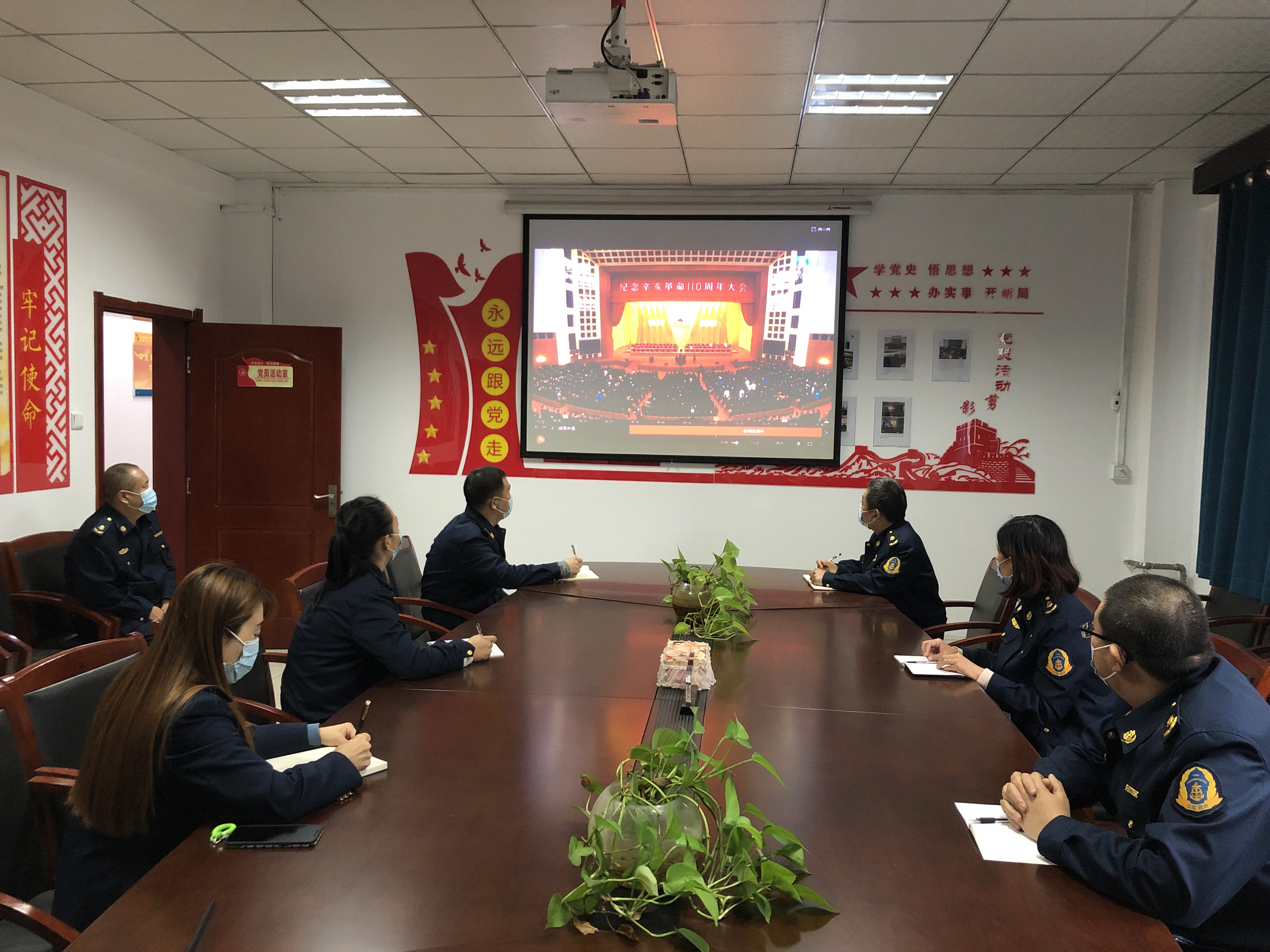 10月9日上午10时,石黄支队石家庄大队组织全体干部职工观看纪念辛亥革命110周年大会。