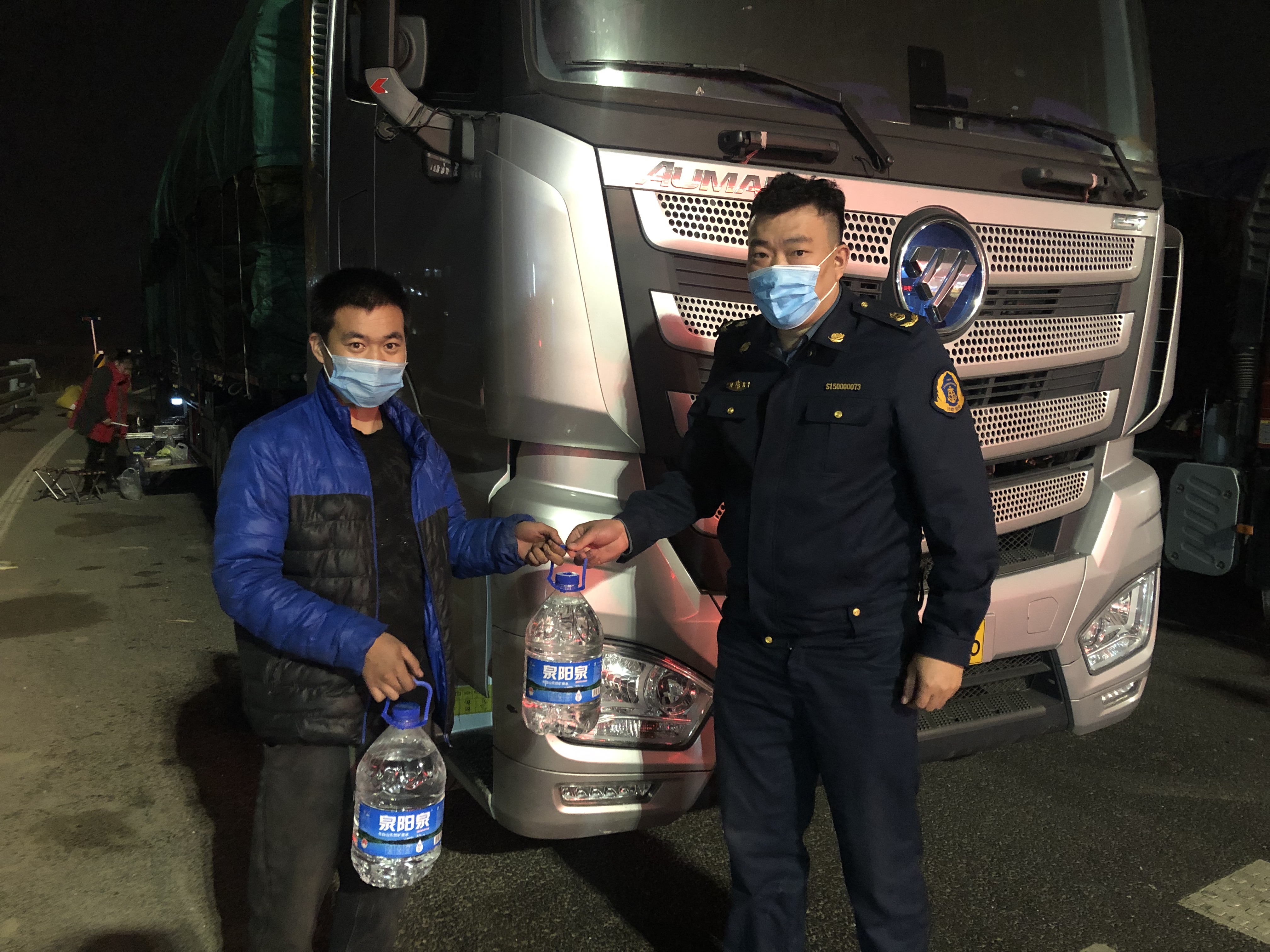 路政队员为司机送水