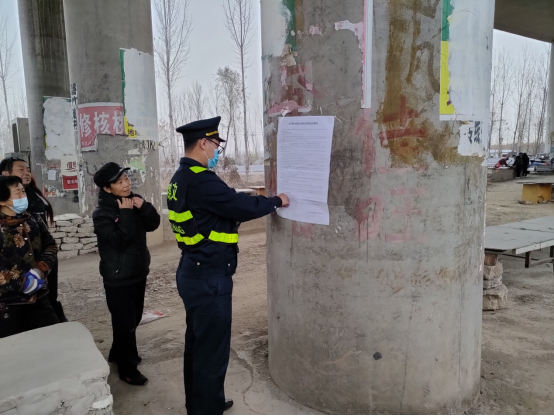 下午15时30分,路政外业执法人员联同工区工作人员在辖区内重点特大桥下进行安全隐患排查。冬季寒冷干燥,桥下废物及堆积物容易产生火灾,对高速桥梁及周边居民人身财产安全有极大隐患。对此,执法人员在重点特大桥下张贴公路法法律相关条文告示,并呼吁周边当地村民进行了解学习,广泛宣传桥下各种隐患存在的形式以及发生险情可能造成的损失,对村民动之以情,晓之以理,希望避免因人为因素产生安全生产事故造成他人不必要的损失。