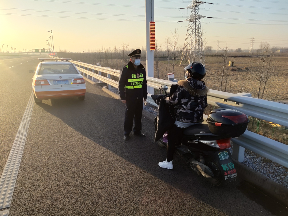 为确保安全,路政执法人员将电动车护送至泗庄收费站就近下路。该电动车驾驶人再次承诺下不为例,不拿自己和他人生命当儿戏,并对路政人员的帮助表示衷心感谢。