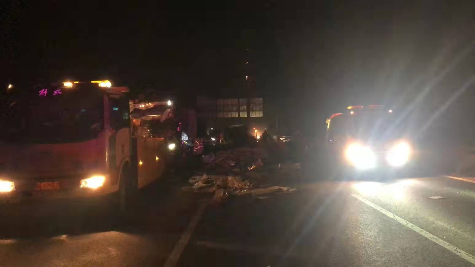 见此状况,为尽快解除交通安全隐患,避免二次事故的发生,执法人员立即开启车载报警器、摆放安全标志、疏导交通的同时联合清障公司共同对路面散落物进行清理,经过近三个小时的处理,7:45分,事故处理完毕,高速公路恢复畅通。此次事故处理,进一步提升了大队处置突发事件的能力。执法人员提醒过路司乘:由于夜间光线差,照明不良等因素易发生交通事故,夜间行驶请控制车速,勿疲劳驾驶。