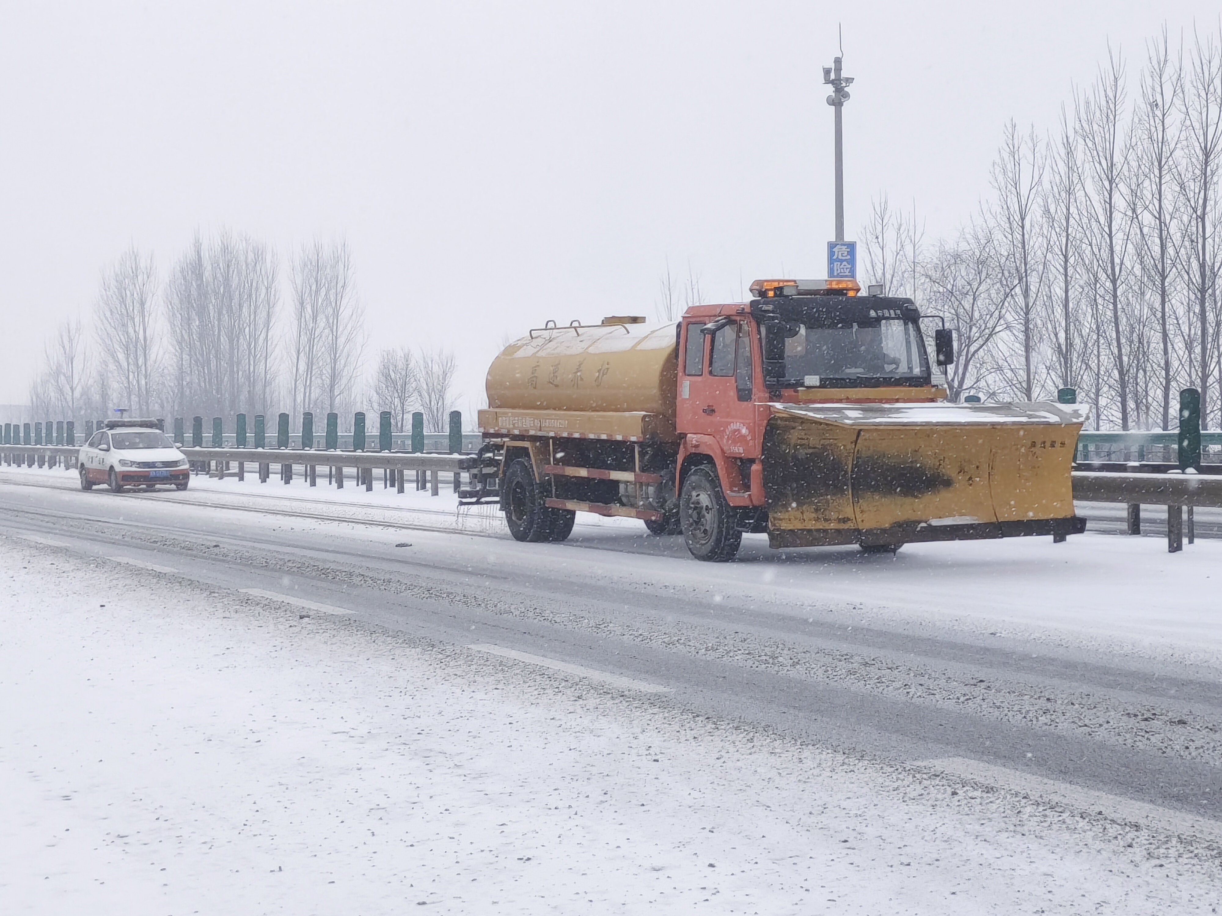 1月22日,今年冬天的第二场雪如约而至。凌晨两点,伴随着寒风纷纷扬扬的雪花开始降落。早有准备的乐亭大队立即启动除雪保畅的应急预案,第一时间通知沿海公司监控中心在可变情报板上滚动播出天气、路况、管控等信息,将在队人员分成了道路巡查、协同保畅和应急处置等三个小组。道路巡查小组人员在路面上往返进行巡查,随时随地的将路况信息和降雪情况进行发布;协同保畅小组人员从凌晨2点20分开始配合乐亭养护工区人员开始撒盐、喷融雪剂和铲车除雪;应急处置小组人员联合救援公司人员在昌黎服务区进行蹲守,在出现交通事故、车辆拥堵或需要压车带道时,及时快速的到达现场。同时大队由平时的一名值班人员增加到两名,及时、准确、详细的做好群众的问答和信息的上传下达工作。