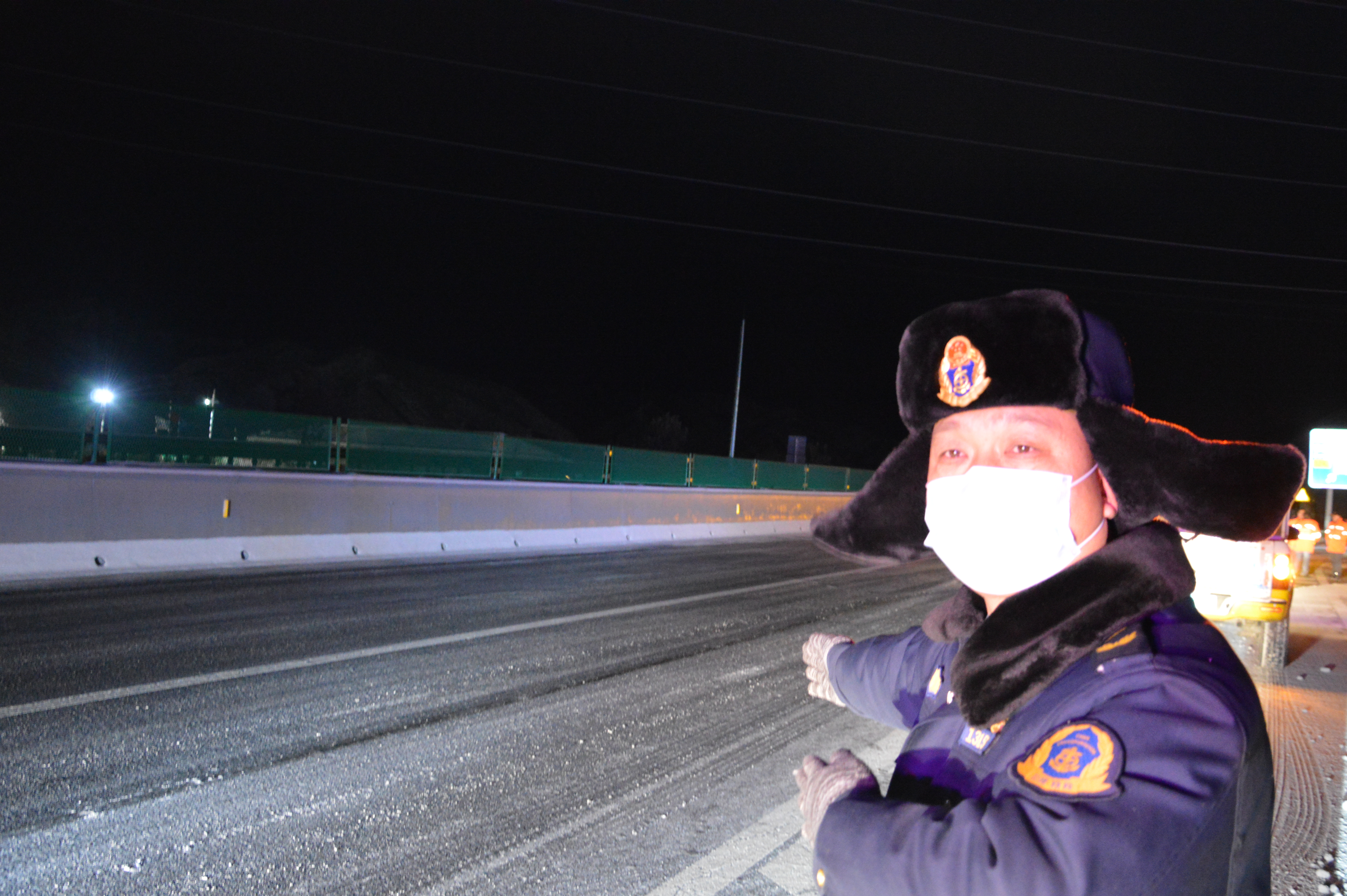 一起救援过后,路政员赵子威的脸已经冻僵了,这几天一直持续低温,今天路面温度零下25度,寒风刺骨,他说“这是最普通的救援,车轮胎爆裂,导致车辆失控,幸亏没有造成人员伤亡,从整个救援现场布控、安排清障车道到救援处理完毕,当天他们除夕零点才返回大队。”