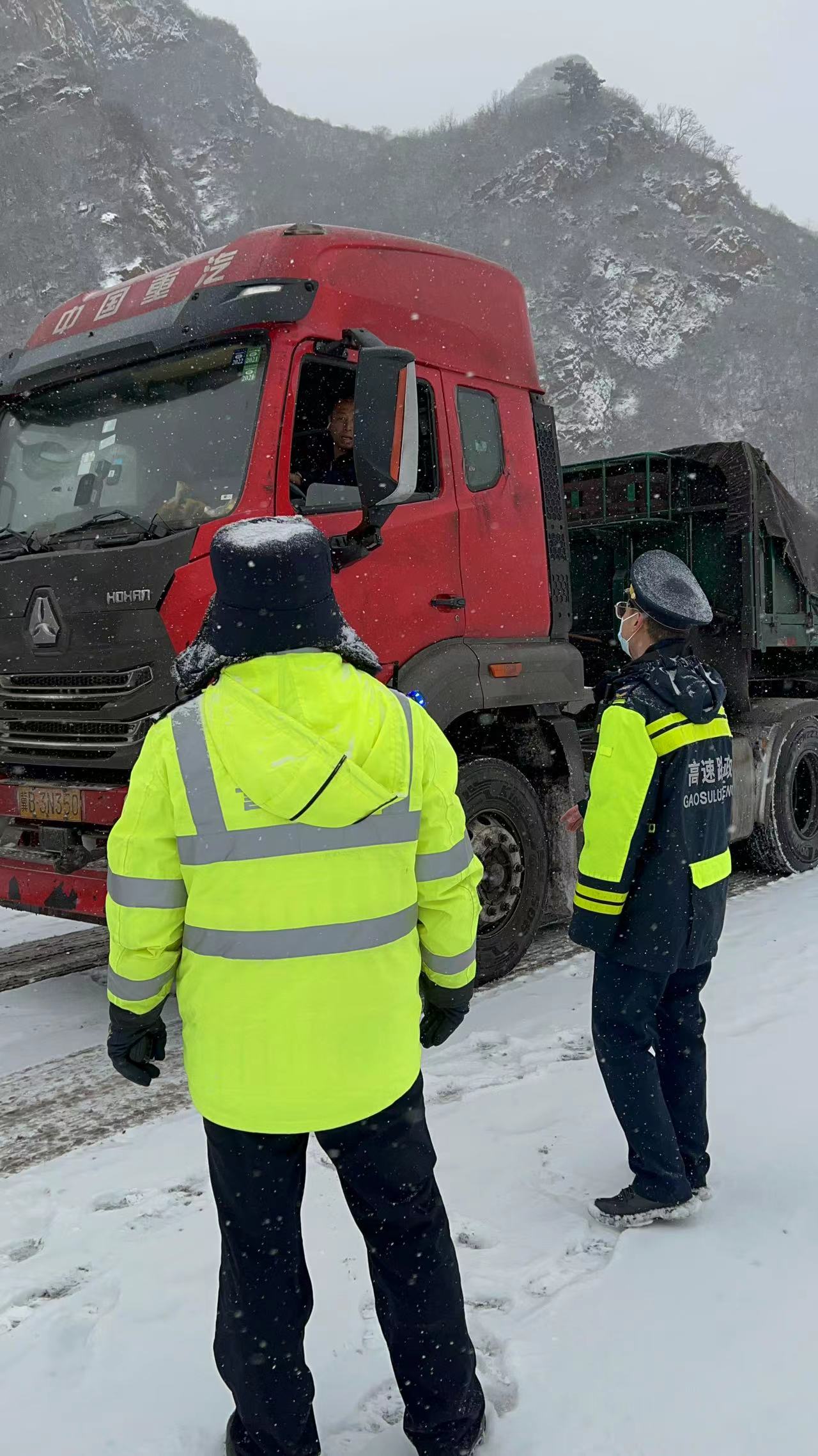 上午九时,辖区陆续开始降雪,隆化大队大队随即启动除雪作业,迅速配合七家工区撒布融雪剂,为除雪作业护尾,同时对枢纽路段开展不间断巡查,确保路面通畅;滦河大队、滦平大队巡逻车在红石砬收费站、金山岭服务区及时到位做好压车带路备勤。12时35分,承德大队在K1080处积极协助交警分流北京方向车辆;13时16分,承德大队辖区北京方向K1062处发生四车追尾事故,大队外业人员第一时间赶赴现场处置,仅半小时,恢复道路畅通;14时35分,滦河大队外业人员顶风冒雪在安子岭往北京方向压车带道,为司乘人员开辟一条特殊的“冰雪归途”。15时20分,隆化大队协助交警在茅荆坝服务区赤峰方向实施交通管制。16时25分,半壁山大队在承唐高速k874+200承德方向协助高速交警进行交通管制……