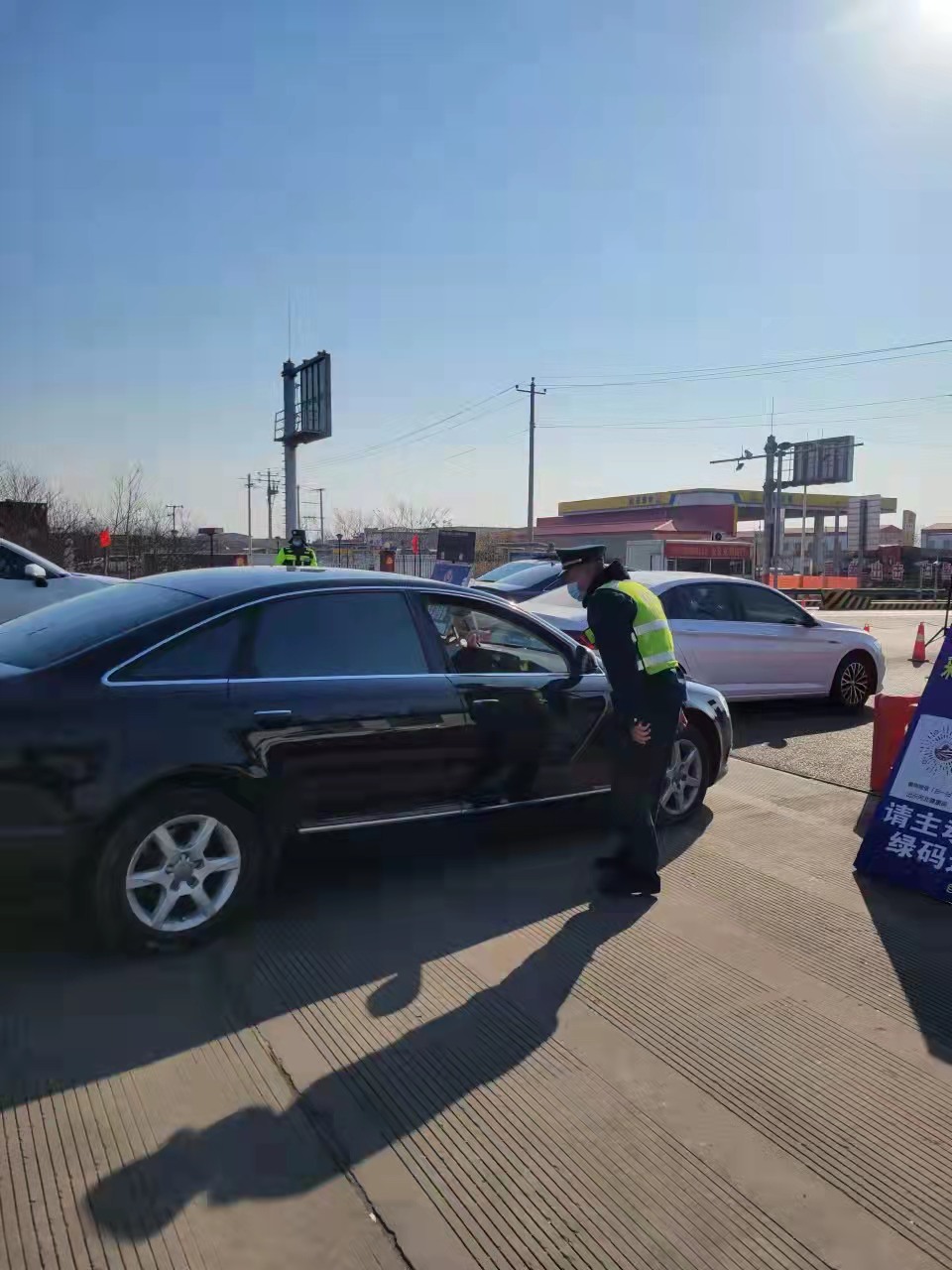 大队协同公安、交警、卫生等部门,在辖区巨鹿高速路口设置卫生检疫站,并开通高速公路应急防疫物资绿色通道,为防疫工作提供保障;协助值守,配合卫生部门对驾乘人员进行查验码测温及行程进行记录,同时对过往驾乘人员开展疫情防护知识宣传。