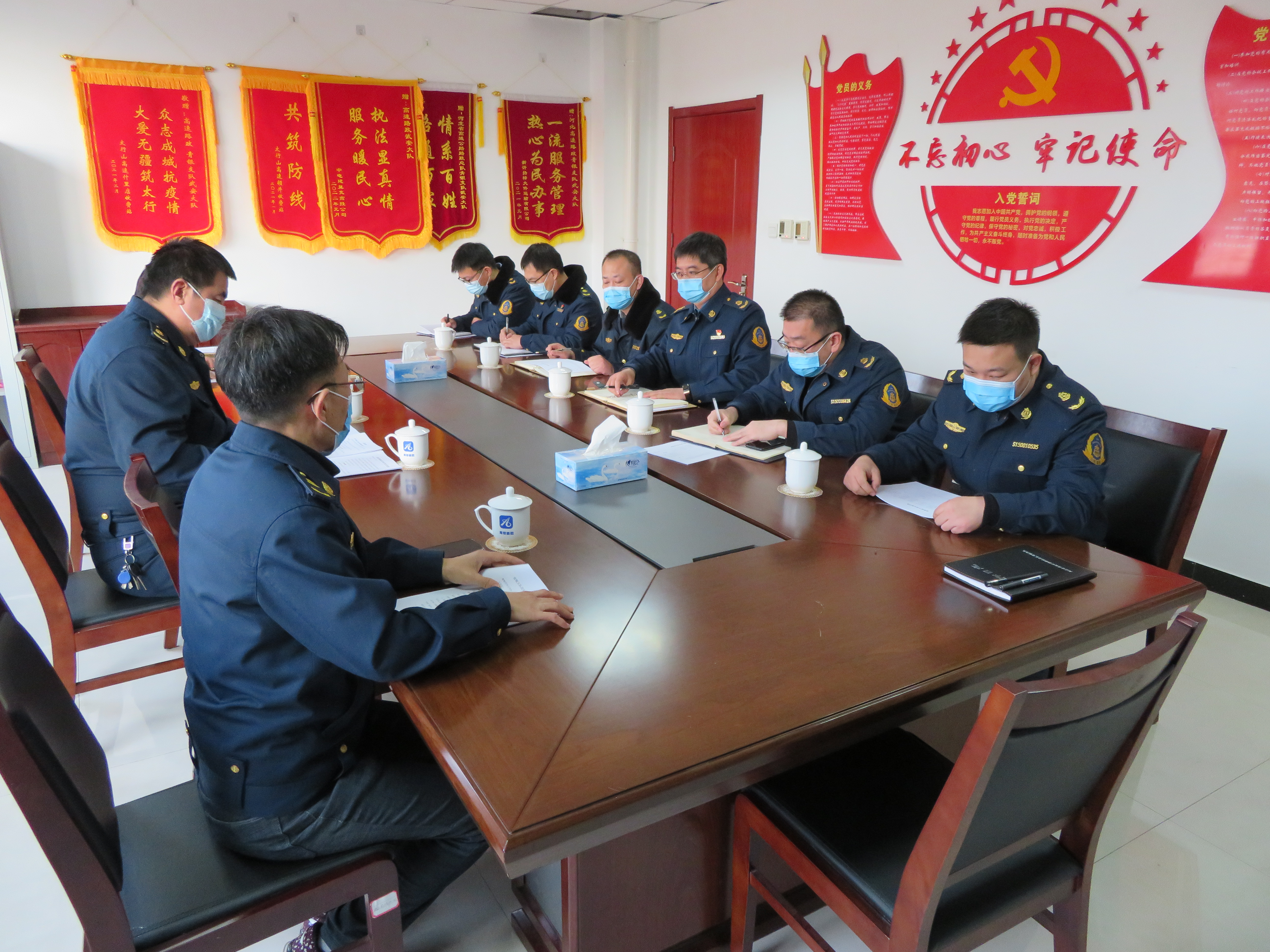 2022年2月17日,青银支队李铁军支队长一行到武安大队开展作风纪律整顿督导工作。