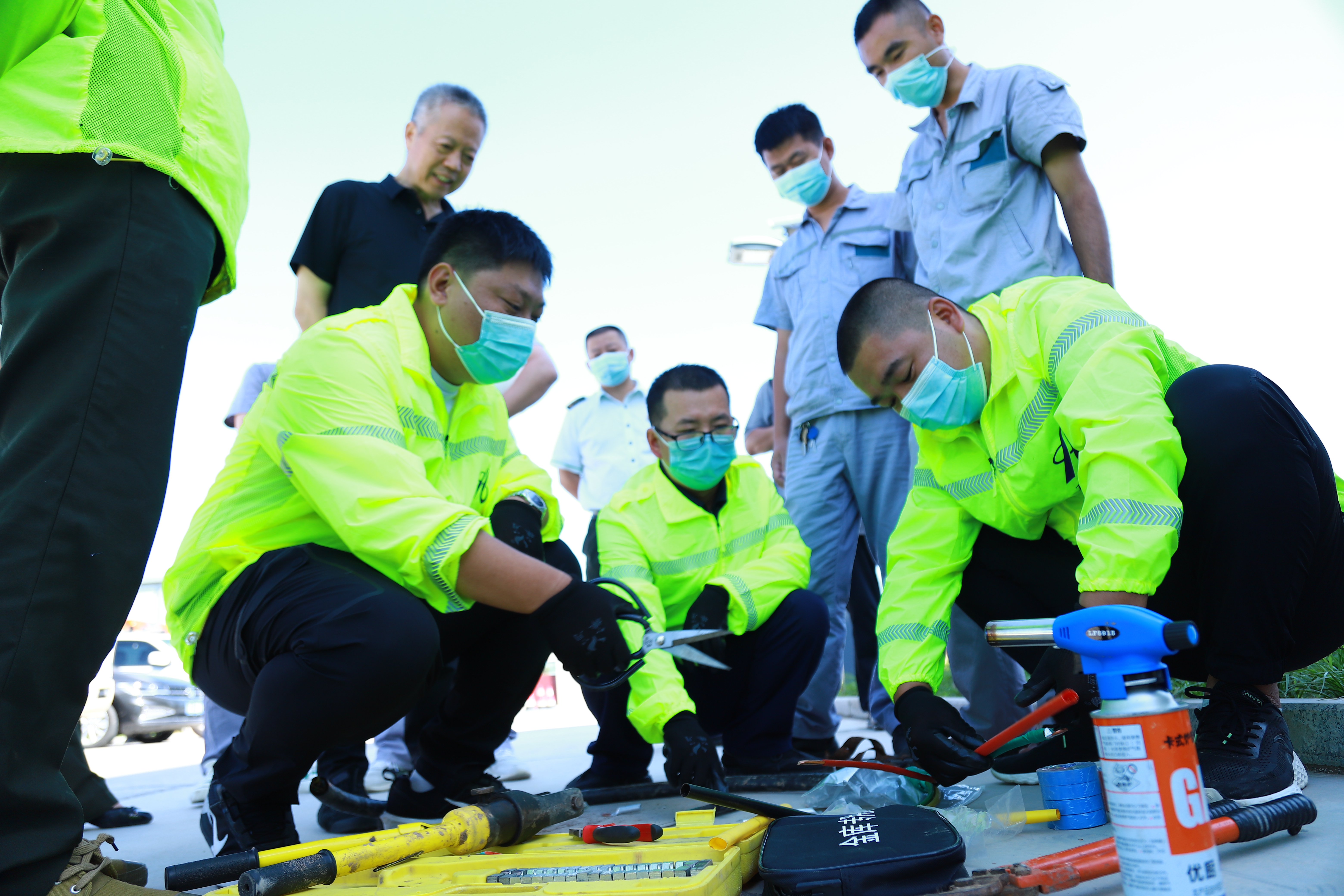 石安分公司副总经理柴飞、收费管理部经理尉英奎、办公室副主任王双喜莅临现场指导,石家庄所所长、所机电维护分中心全体人员及所属各站主管副站长、机电员、电工等40人参加演练。