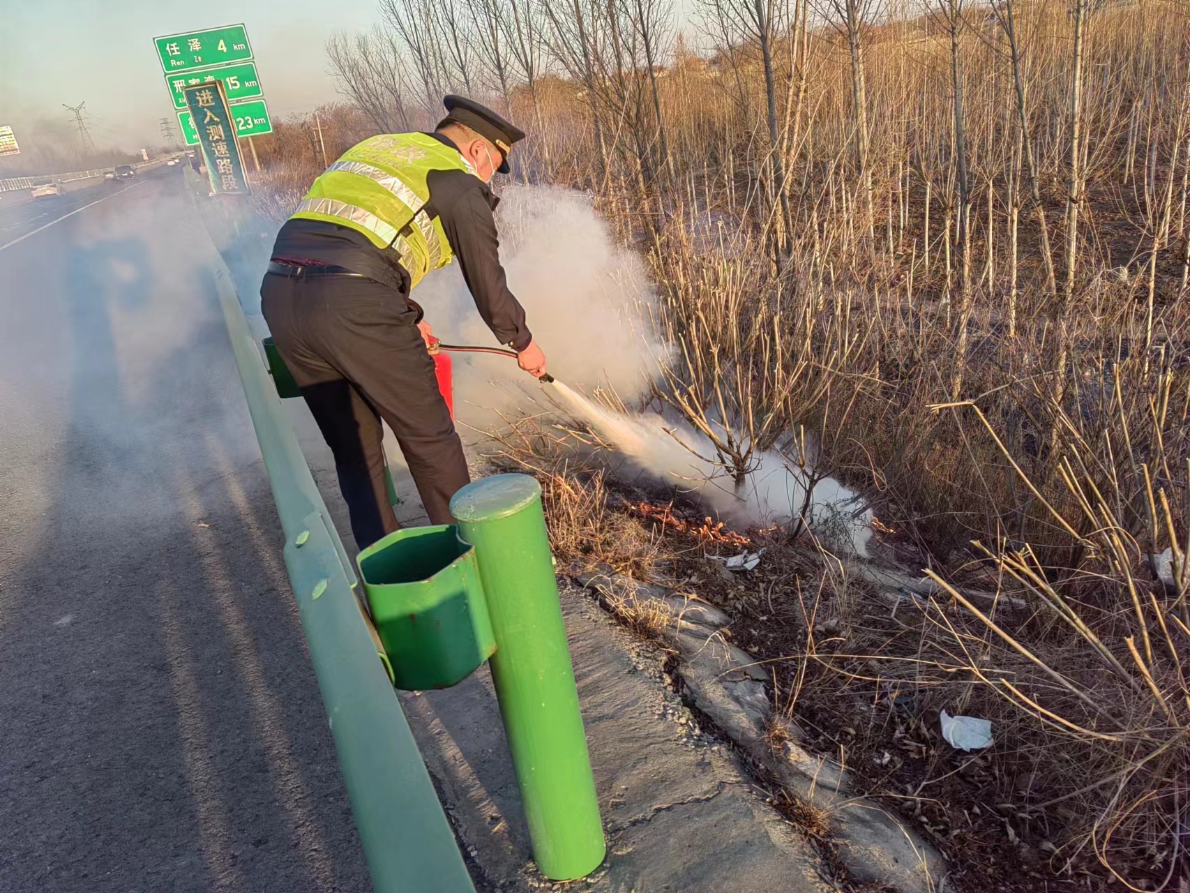 冬春季是火灾高发季节,石安支队邢衡大队进一步做好火灾防控工作,坚决防范和遏制火灾事故的发生。1月27日,辖区高速发生一起边沟起火险情,邢衡大队路政人员快速扑灭,及时消除了安全隐患,诠释了路政人员的责任与担当。