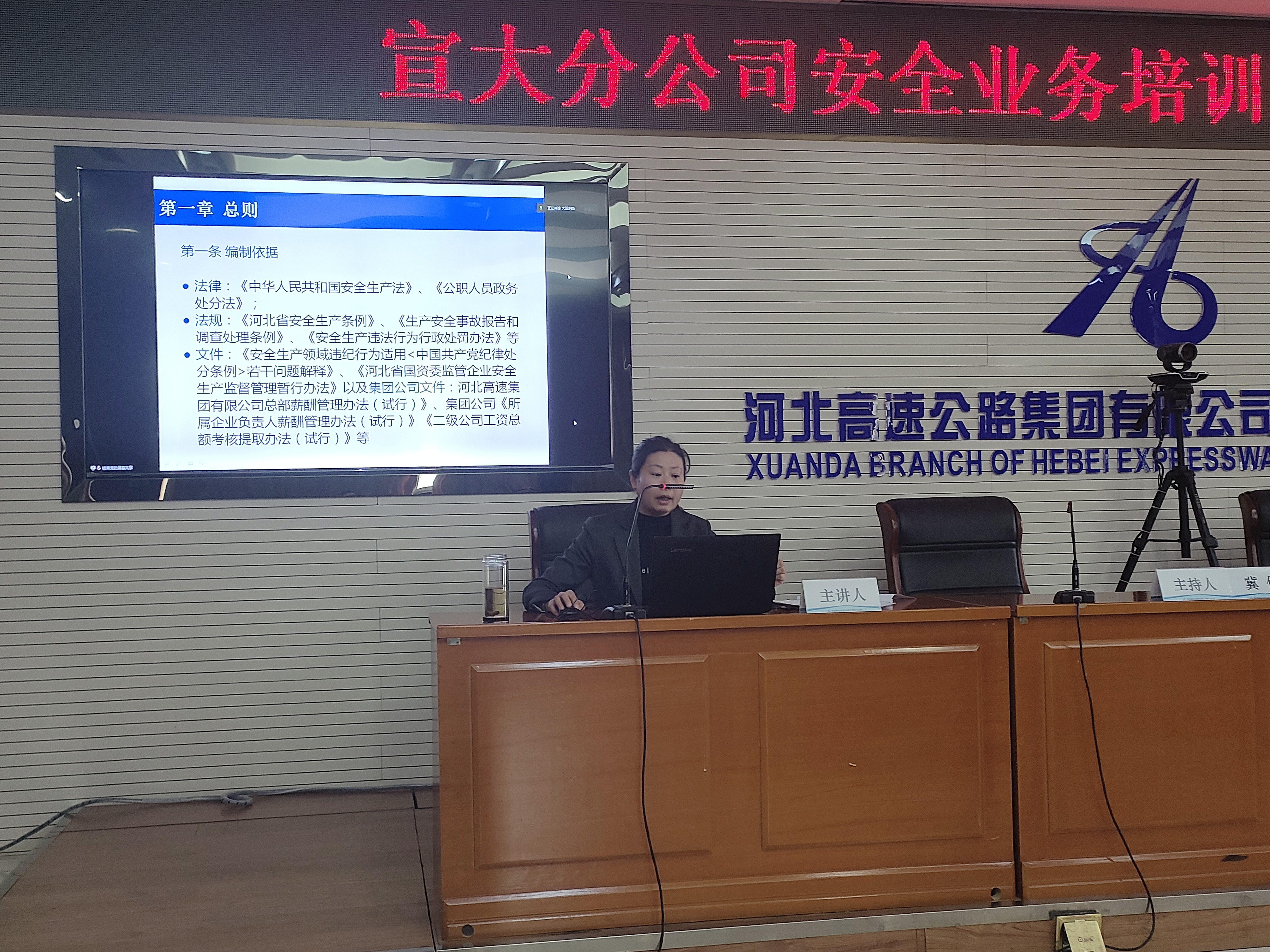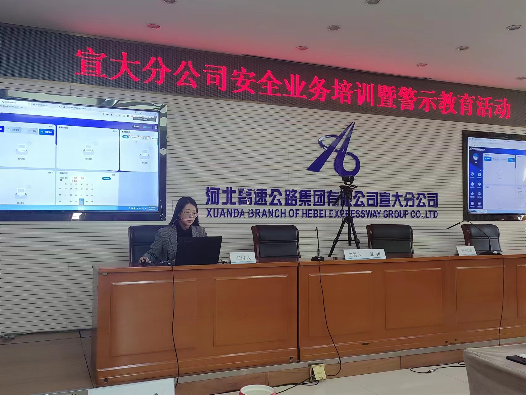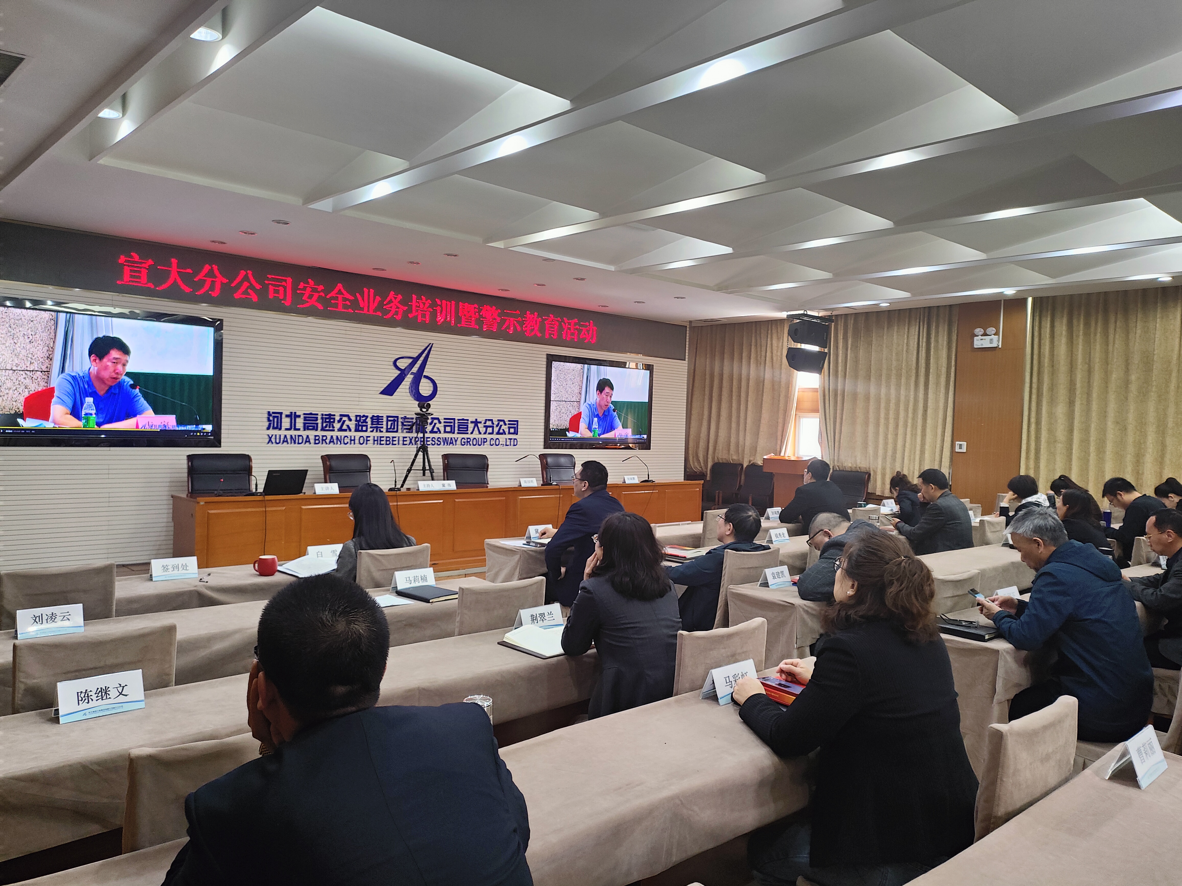 4月14日,宣大分公司开展安全业务培训暨警示教育活动。分公司领导,纪委副书记,各部室、各中心主要负责人、负责人及安全员在分公司总部参加,各站区主要负责人、负责人、安全员及保通保畅、养护班组相关人员在各收费站会议室以视频形式参加,副总经理冀伟同志主持活动,党委书记、总经理陈园明出席活动并讲话,安全环保部同志进行安全业务主讲。