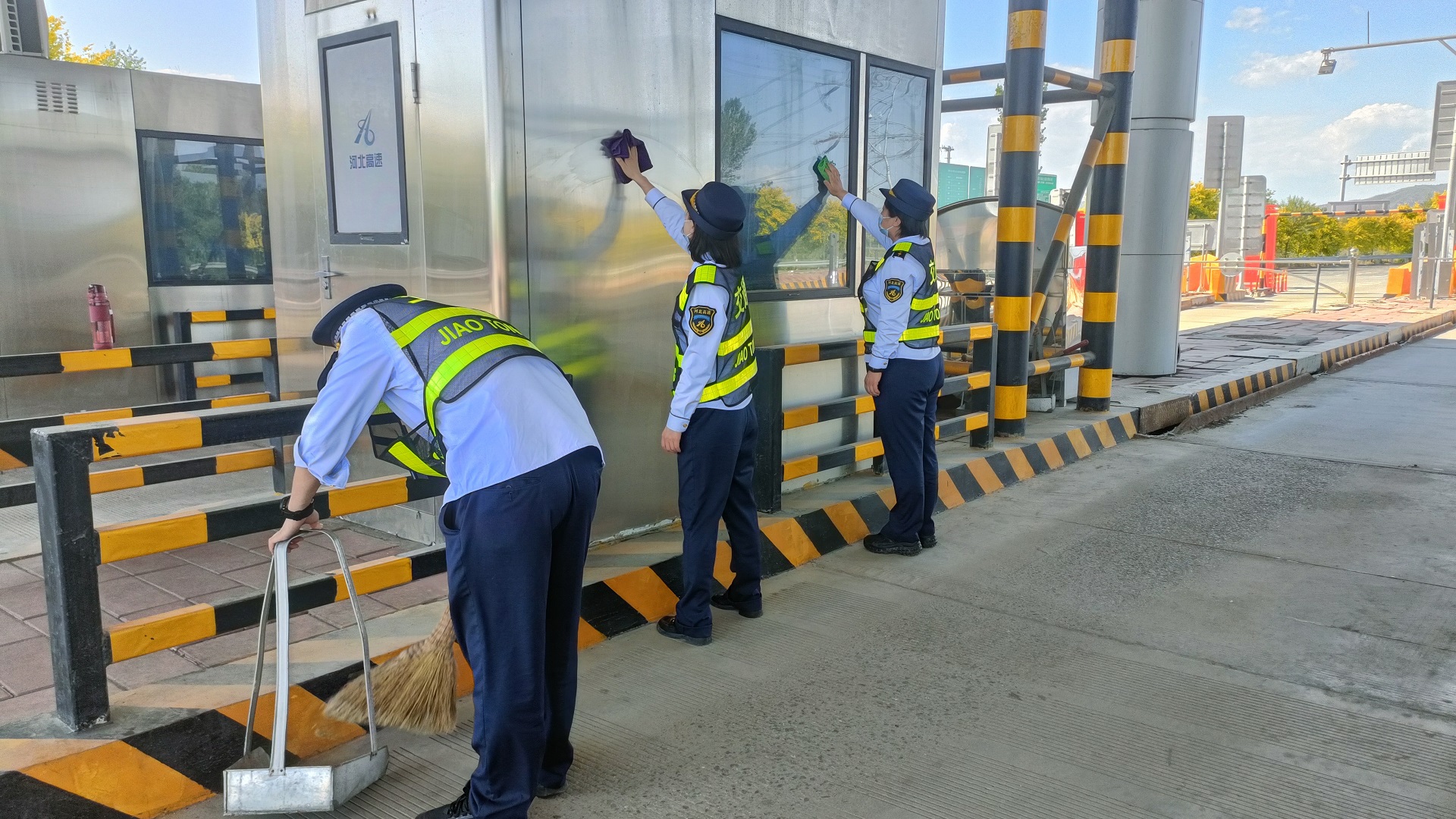 三是卫生清理,靓化环境。组织开展全方位、无死角式卫生大扫除活动,按照划分区域对收费广场、收费车道、岗亭内纸屑、垃圾进行全面清扫,对收费岗亭内玻璃进行擦拭,确保卫生清洁无死角,为职工们创造干净整洁的工作环境,为过往司乘营造舒适整洁的出行通道。