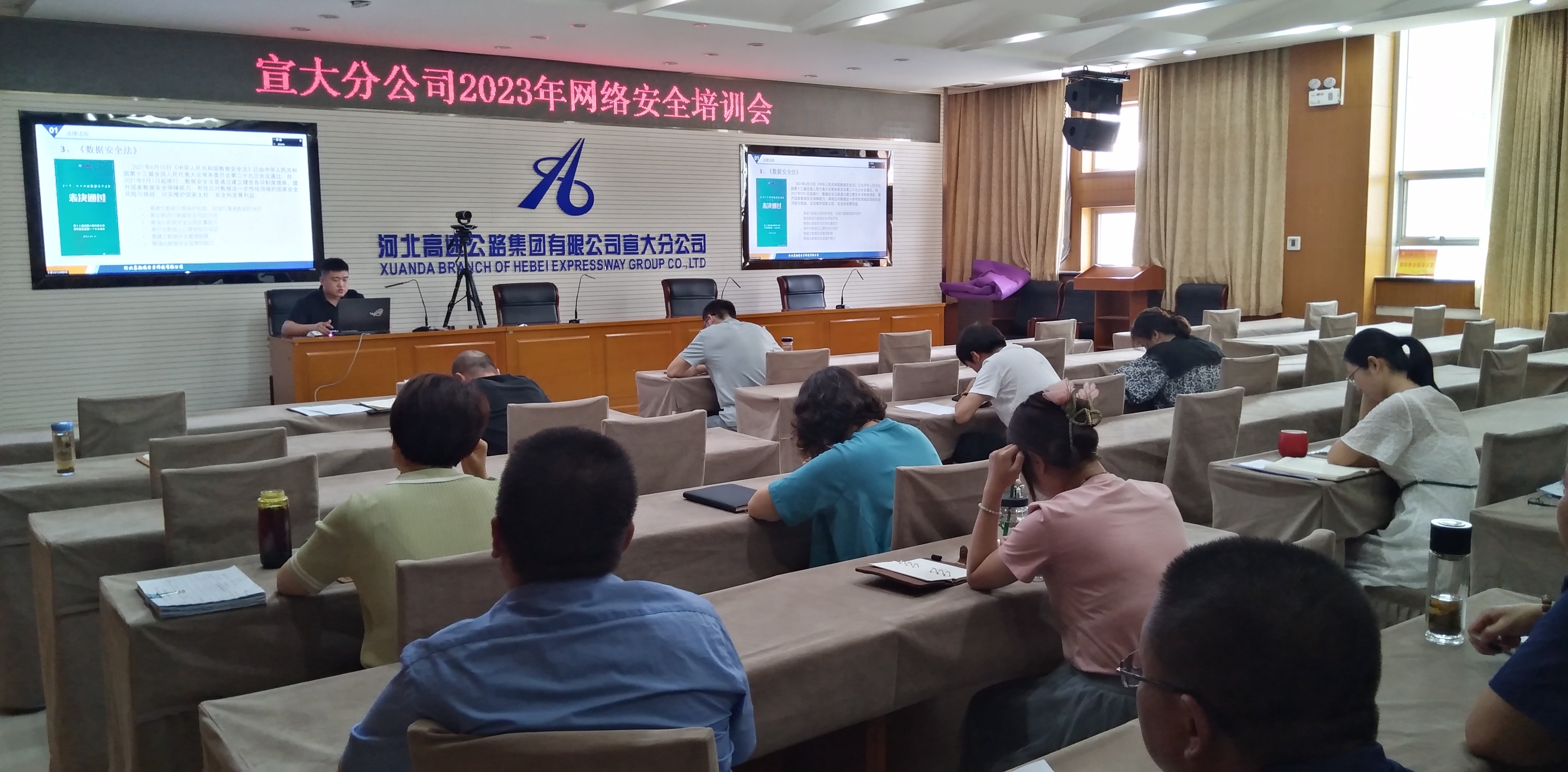 根据2023年培训计划及应急管理工作安排,宣大分公司于近日开展了2023年网络安全培训及网络安全事件应急演练。当日上午,由事业发展部组织,由分公司网络安全运维合作单位的信息安全工程师现场授课,各单位网络安全员、机电维护员,总部各部室、直属各单位网络安全员参加了培训。培训内容从网络安全相关法律法规、网络安全现状与形势分析、网络安全典型案例、常见网络安全违规行为四个方面展开。课程结束后,分公司对参训人员进行了网络安全知识考核,参训人员均考试合格。