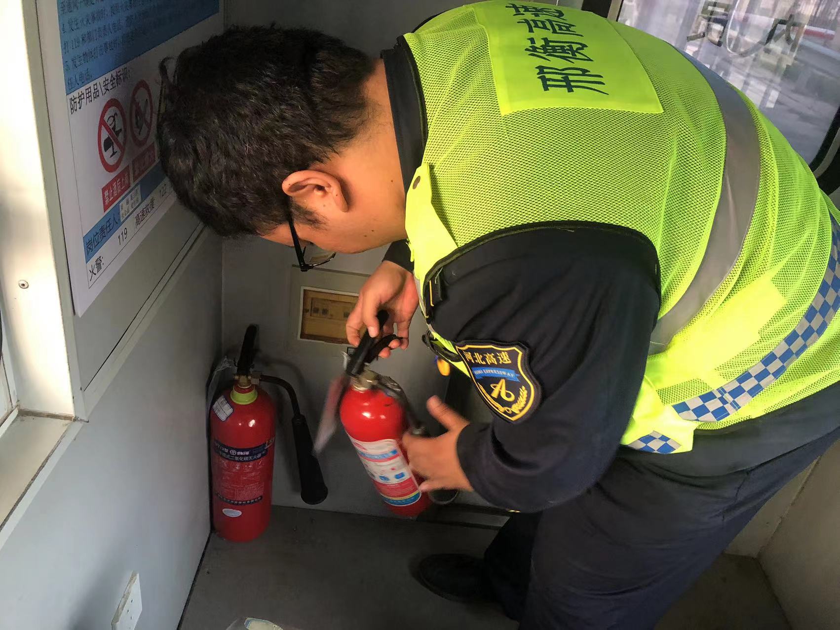 此次安全检查,对收费岗亭内收费设备、供电设备等进行全面排查,避免因机电故障出现堵车、车辆滞留等现象;安排在岗员工清理变压器下方杂草,排除安全隐患;对消防设施进行统一排查,确保所有消防设施合格有效。