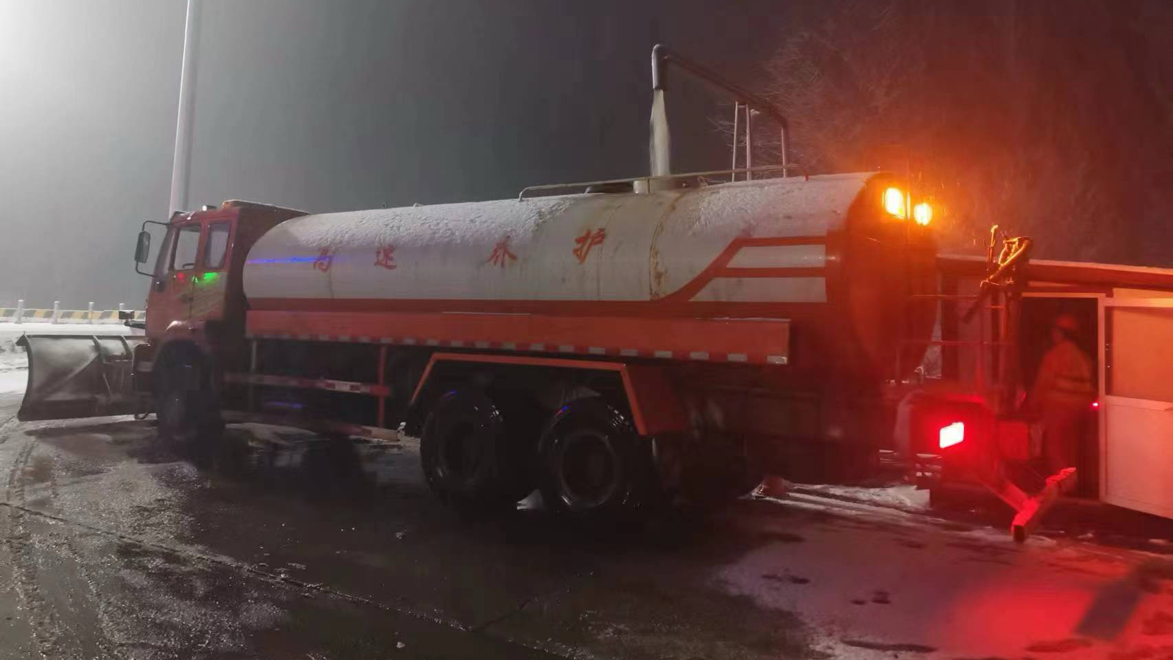 二、重点路段预撒布,降低行车安全隐患。16日夜间22时许,沧州分中心所属养护队及时对管养路段内桥梁、下坡路段进行融雪剂预撒布,降低夜间行车安全隐患。