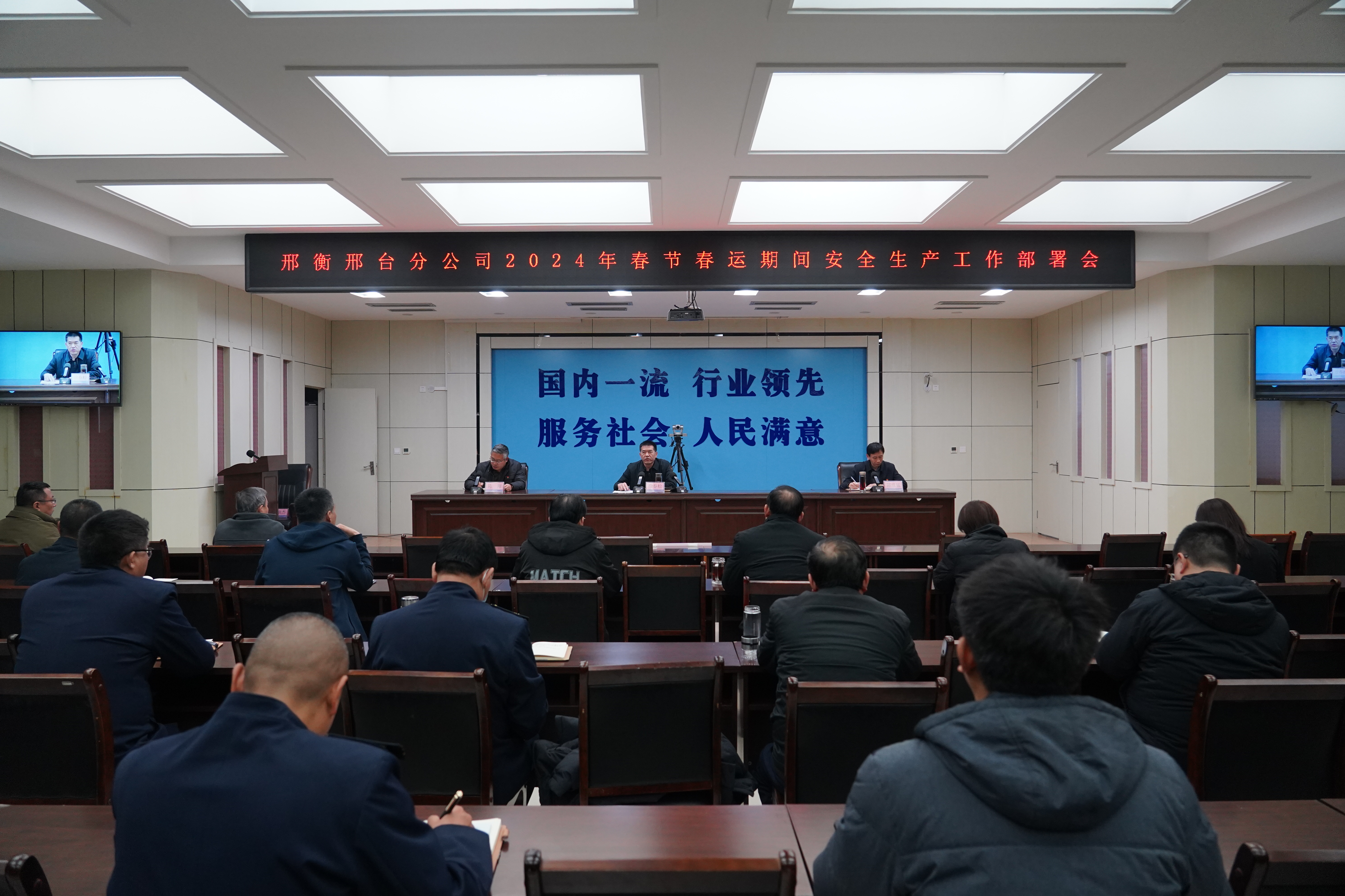 1月30日,邢衡邢台分公司召开2024年春节春运期间安全生产工作部署会议,安排部署今冬明春及春节期间安全生产重点工作,全力预防和遏制各类安全生产事故,确保人民群众度过一个平安、快乐的春节。党委书记、总经理徐春松出席会议并讲话,副总经理陈翔主持会议,副总经理李淑杰、纪委书记陈彦猛出席会议,纪委副书记,总部各部室和所属各单位主要负责人参加会议。