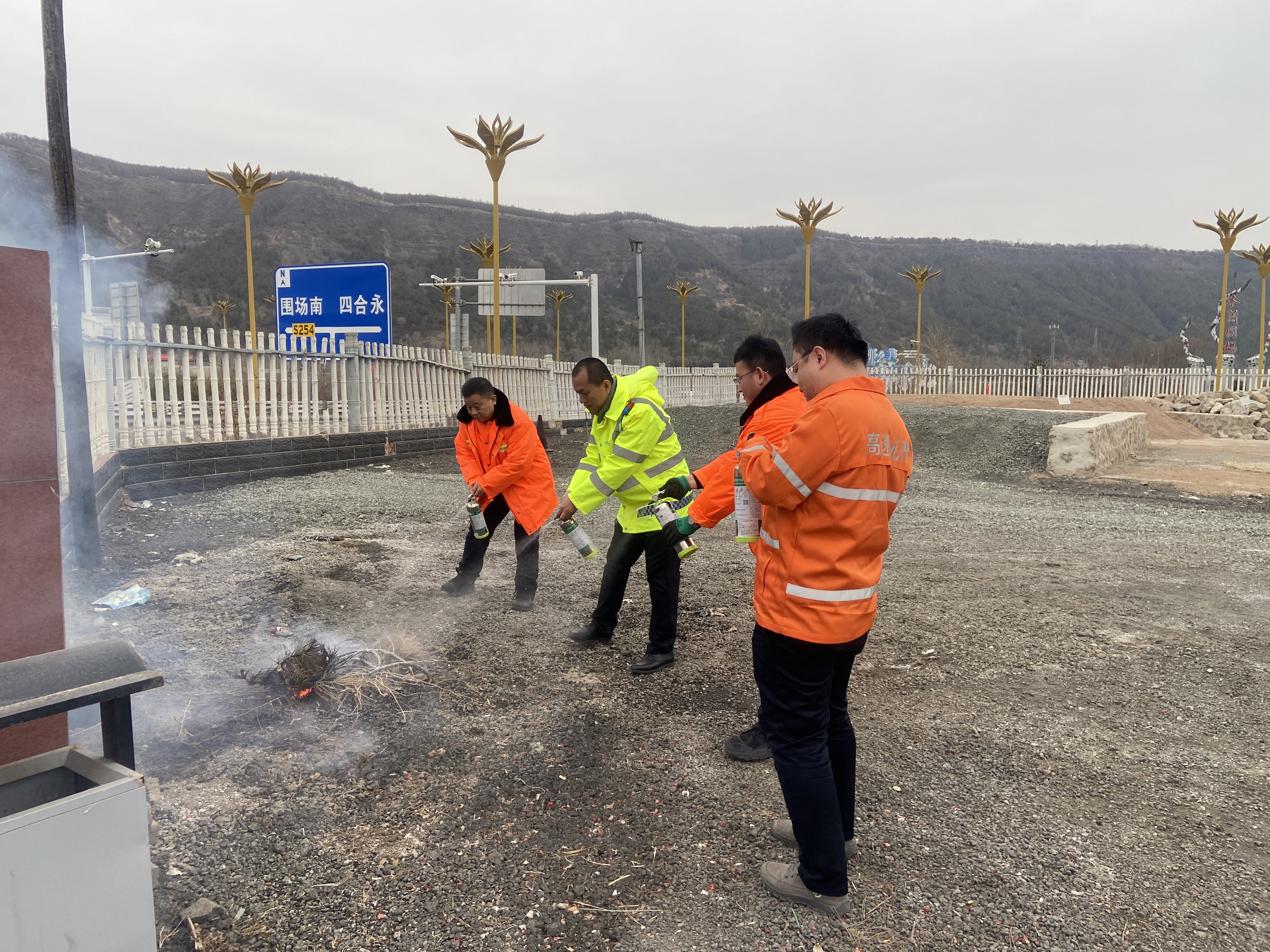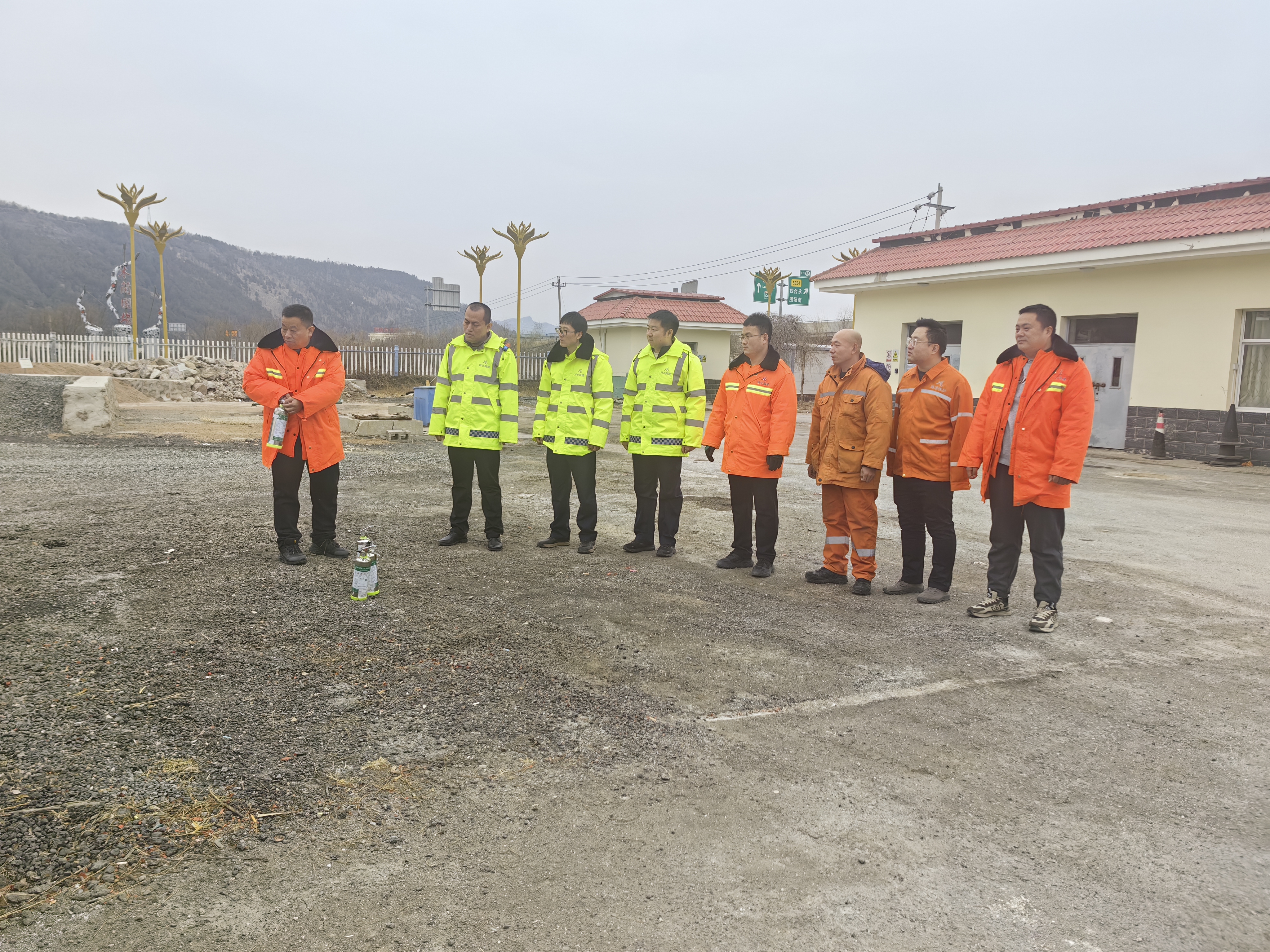 接下来,全体人员抵达模拟起火点,由班组负责人按照“一提二拔三瞄四压”的顺序讲解灭火器的使用,随后,使用灭火器进行灭火。