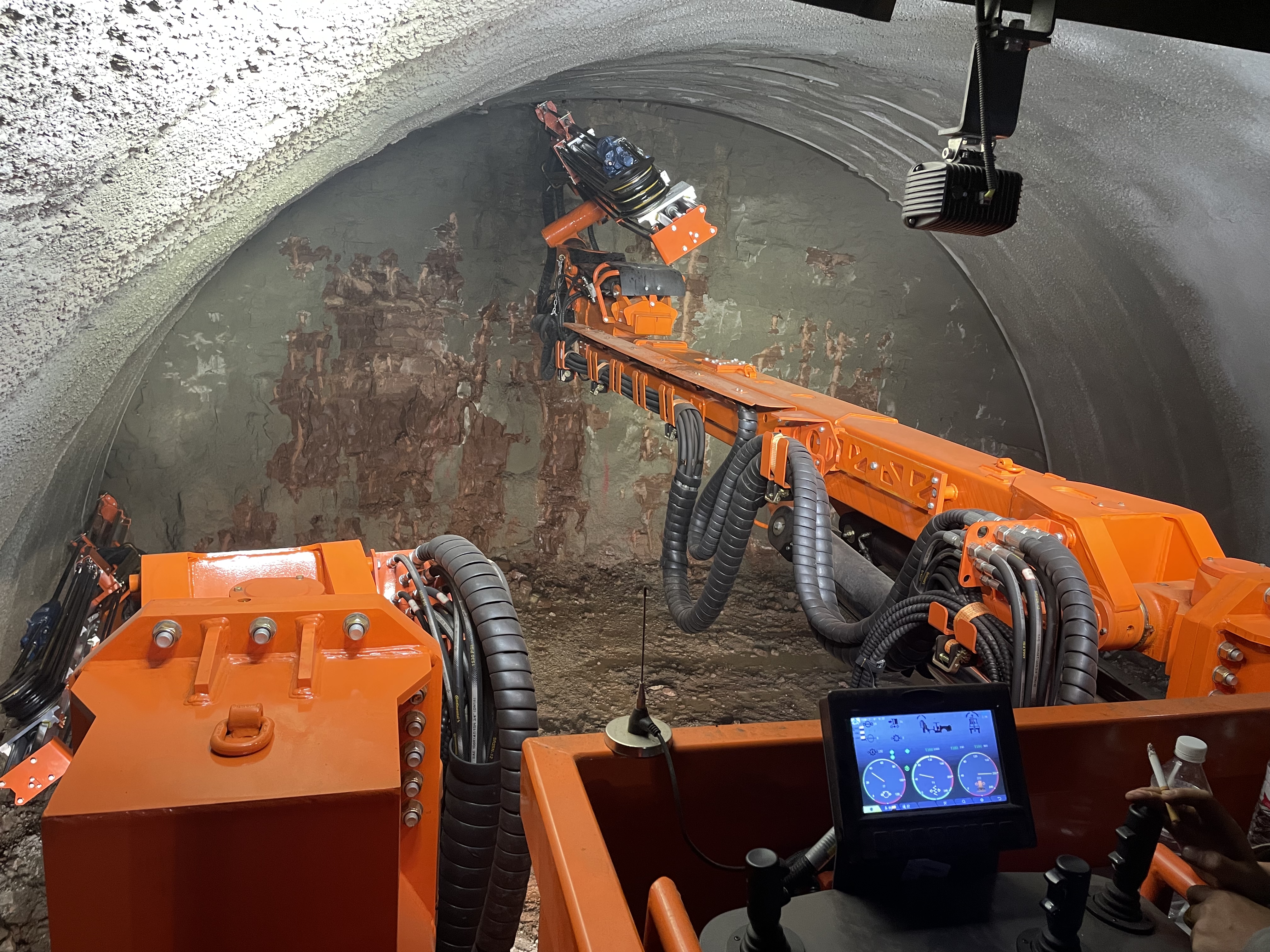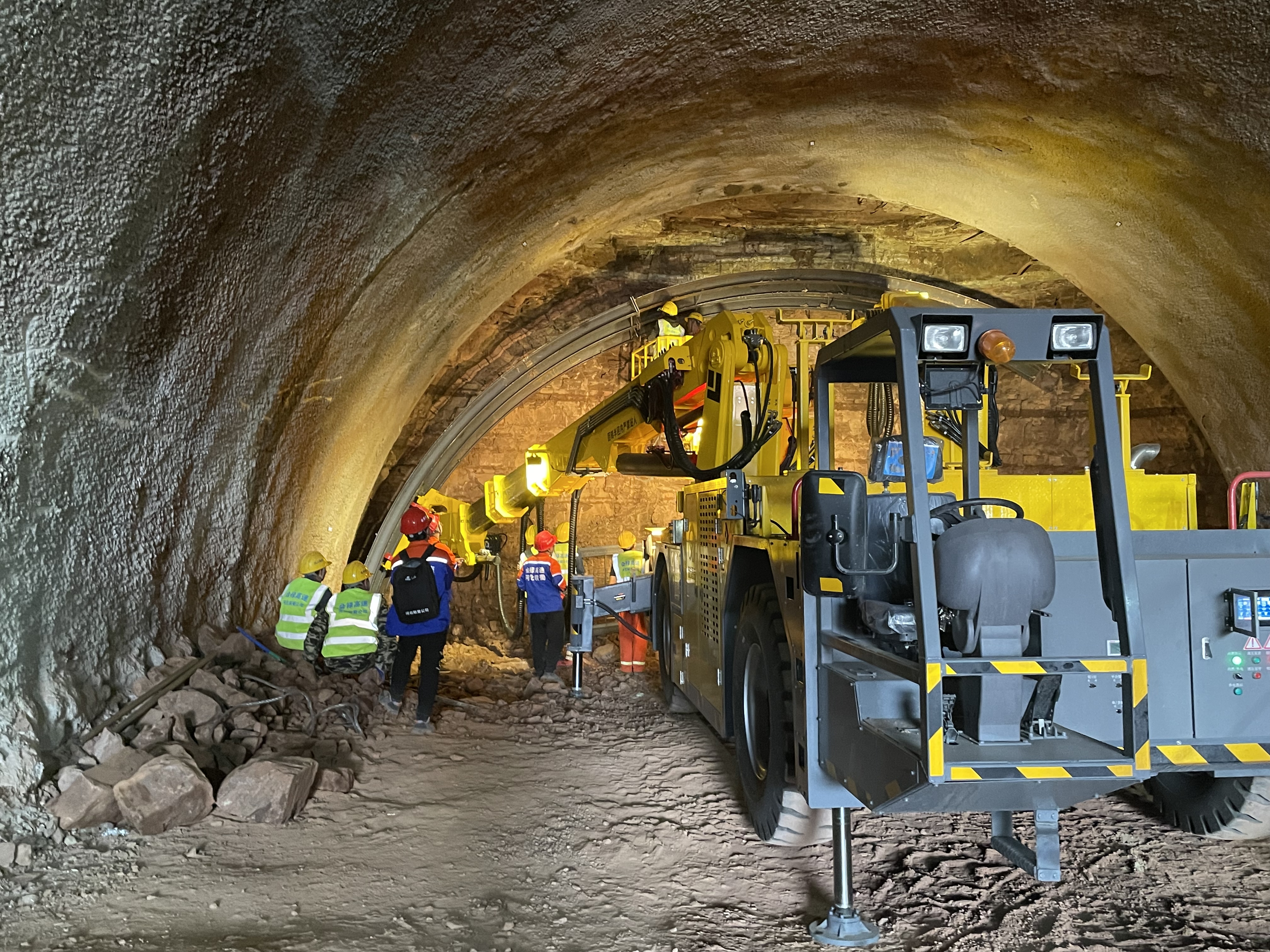 “工欲善其事,必先利其器。”项目部深入贯彻落实上级关于隧道设施机械化、智能化要求,推进隧道建设“机械化换人、自动化减人”新理念。协作单位先后引进智能二衬台车、双臂凿岩台车及挂布台车等先进机械设备,其中智能二衬台车具备投入成本低、结构可靠、操作便利、隧道成型面好等优点,与其他辅助机械合作,能进一步提高铁柳隧道二衬施工机械化率和施工进度。自推行机械化配套施工以来,项目隧道施工作业效率显著提高,作业环境明显改善,安全、质量、进度、成本把控能力有效提升。