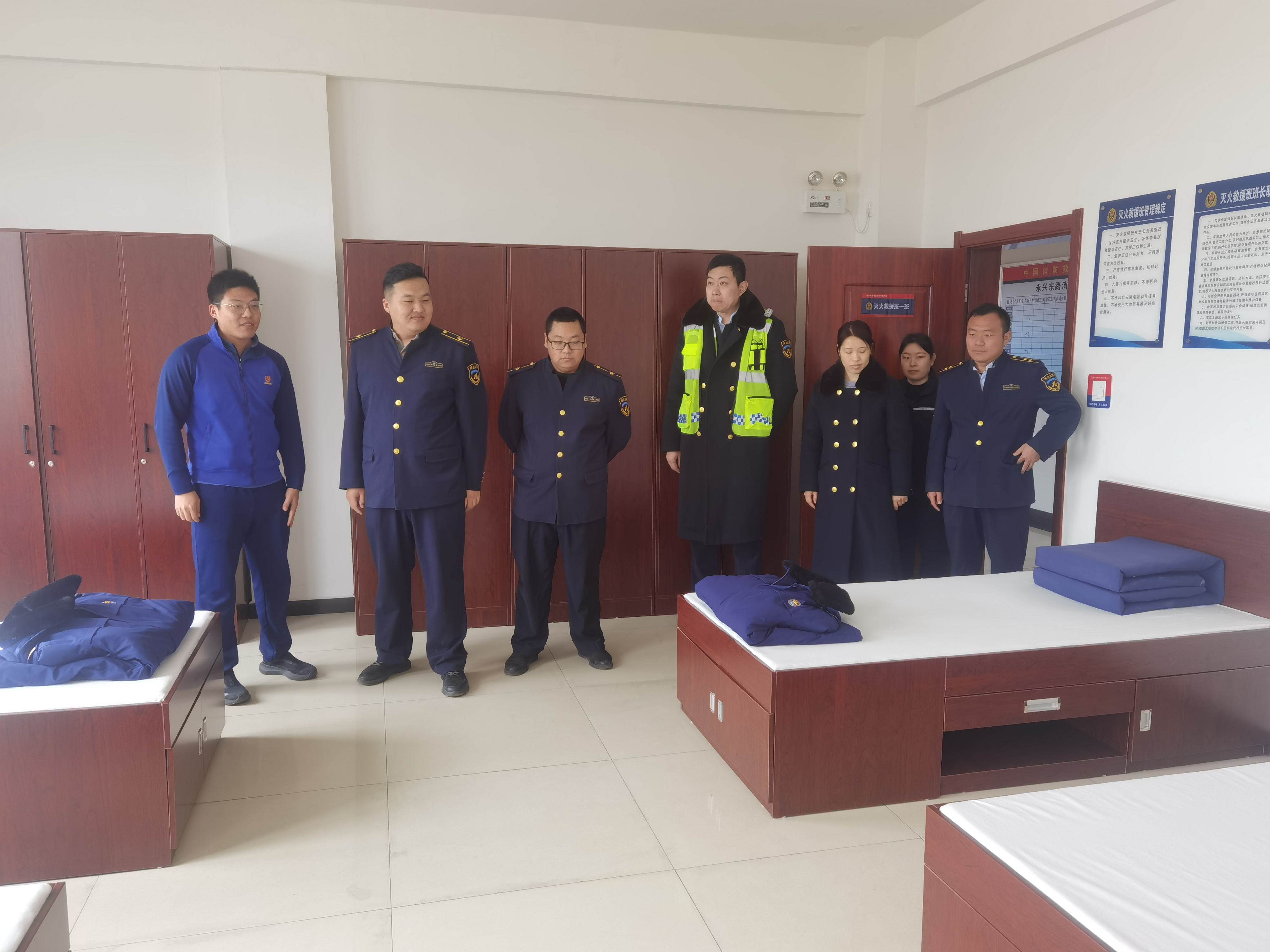 在消防大队官兵的引领下,冀州南收费站的职工们依次参观了消防文化走廊与宿舍,详细了解了消防队员的日常工作和生活。此外,大队消防救援人员还带领职工们参观了消防车辆和器材装备,详细介绍了相关装备器材的作用、使用范围及方法,并对部分装备进行了现场演示。在消防救援人员的演示下,职工们对消防装备器材有了进一步的认识。随后,消防救援人员就发生火灾事故时如何组织人员疏散、如何自救逃生、如何使用灭火器扑救初起火灾等方面内容为职工们进行了详细讲解。并提醒职工们在日常生活中要做到“三清三关”,掌握必要的消防安全常识。