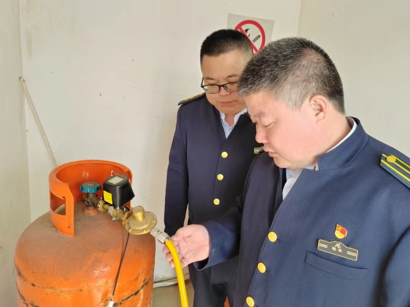 一是着重对食堂燃气使用情况进行检查。查看了储气室是否通风,液化气瓶是否合格、液化气罐阀门是否松动、输气软管是否老化、燃气报警器能否正常使用,是否及时关闭电气设备开关、关闭气瓶角阀及灶具阀门,确保站区用气安全。