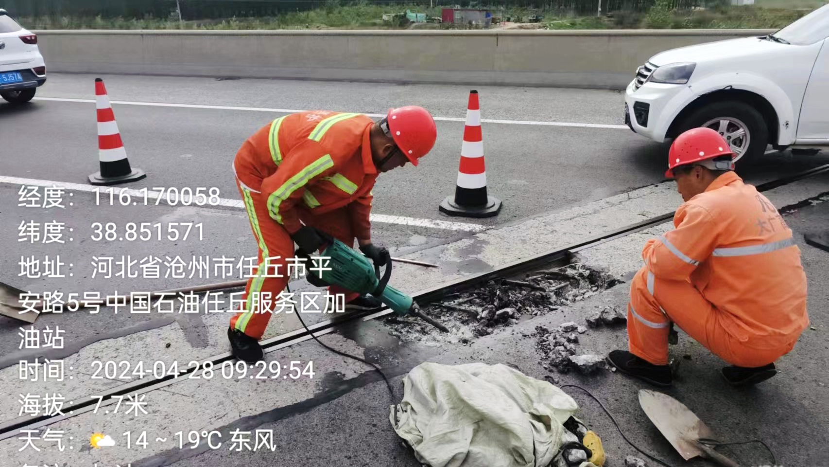 此次施工,任丘驻点严把材料关、质量关、安全关,顺利通过养护班组验收,其间未造成路面压车,确保了高速公路安全畅通。