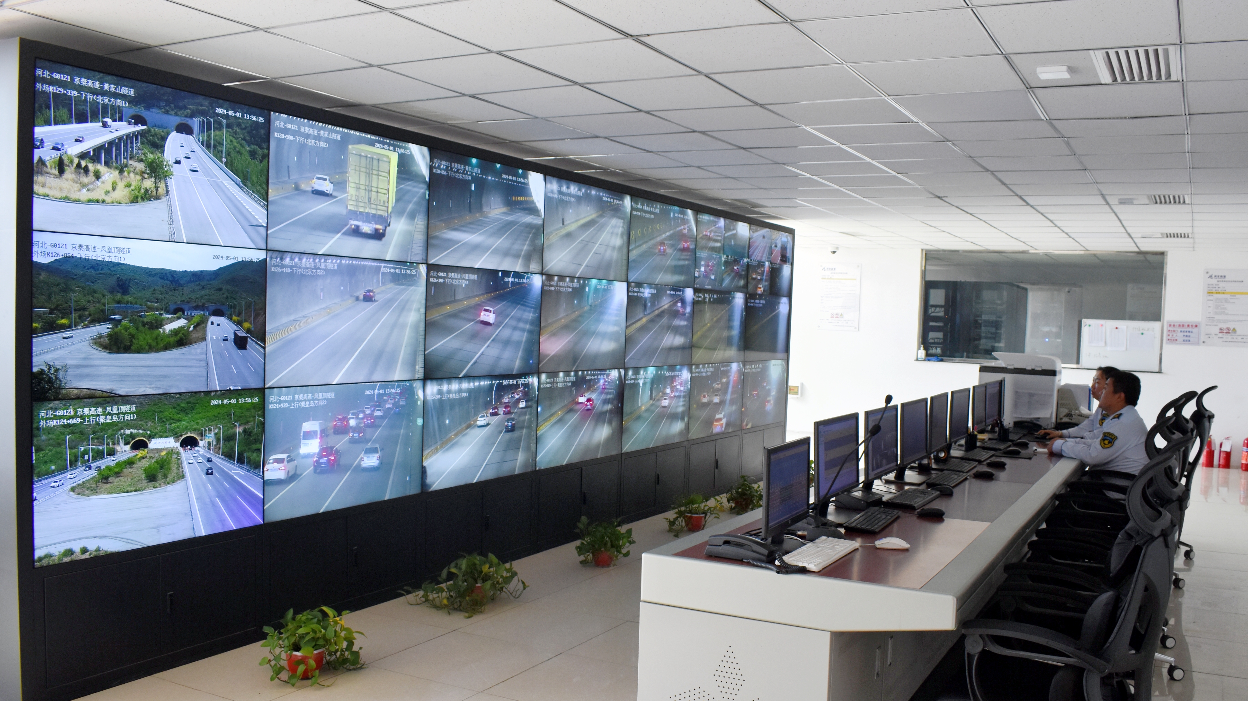一是强化隧道监控保畅通。监控人员严格落实24小时值班制度和信息报告制度,时刻紧盯隧道内车流及通行情况,充分利用视频监控发挥“千里眼”职能作用,做好隧道监控巡查;通过隧道入口情报板及时发布天气、路况等提示信息,引导司机安全驾驶;加强与养护班组、保通保畅应急中心、高速交警等部门的联勤联动,确保突发事件快速处置,道路快速通行,保障隧道通行环境安全、畅通。