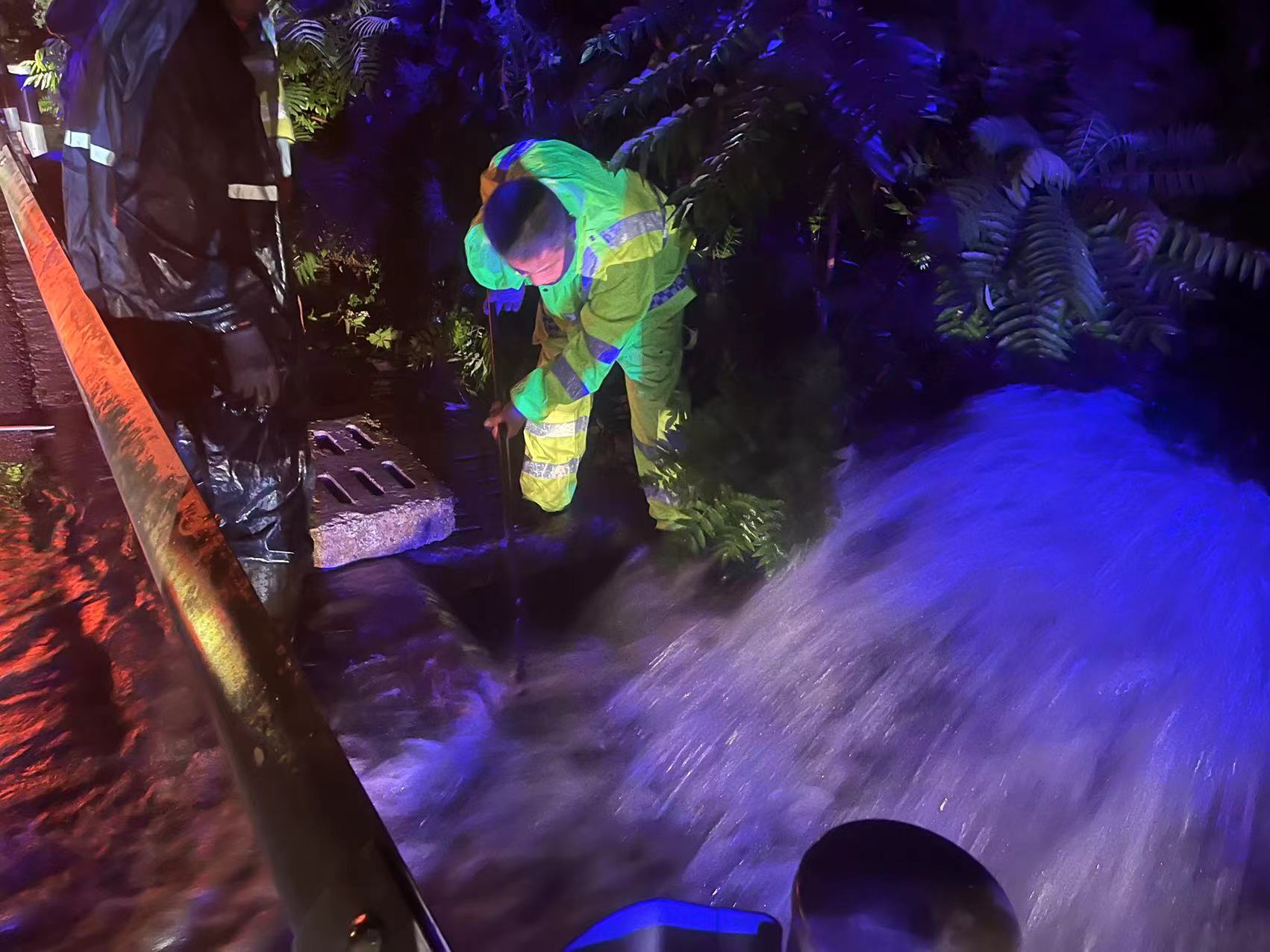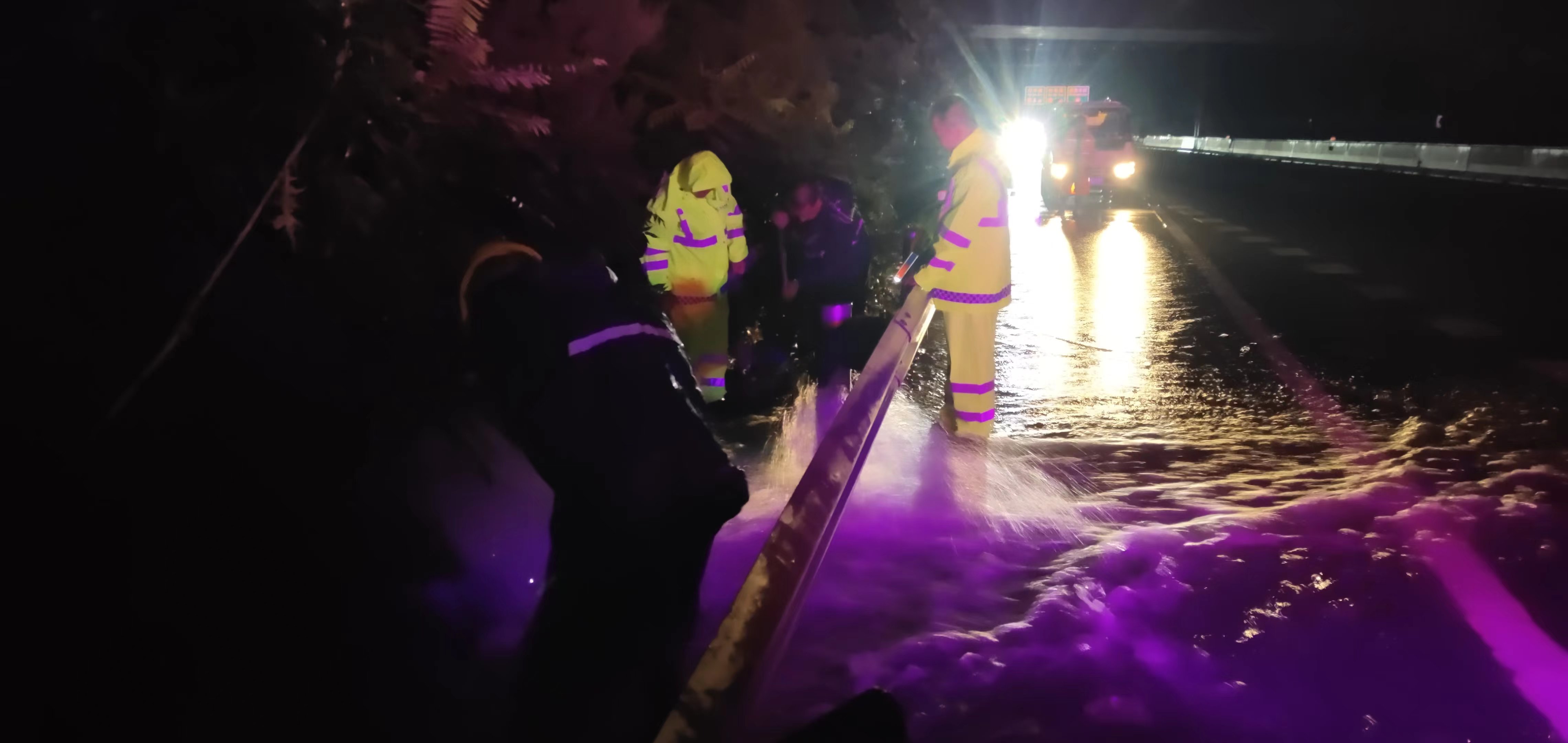 在这关键时刻,雄安分中心燕郊养护队接到大厂保通保畅大队通知后迅速响应,启动应急预案,组织全体在岗人员赶赴现场进行紧急排水。队员们身着反光背心,携带专业工具和设备,迅速地投入到应急抢险工作中。