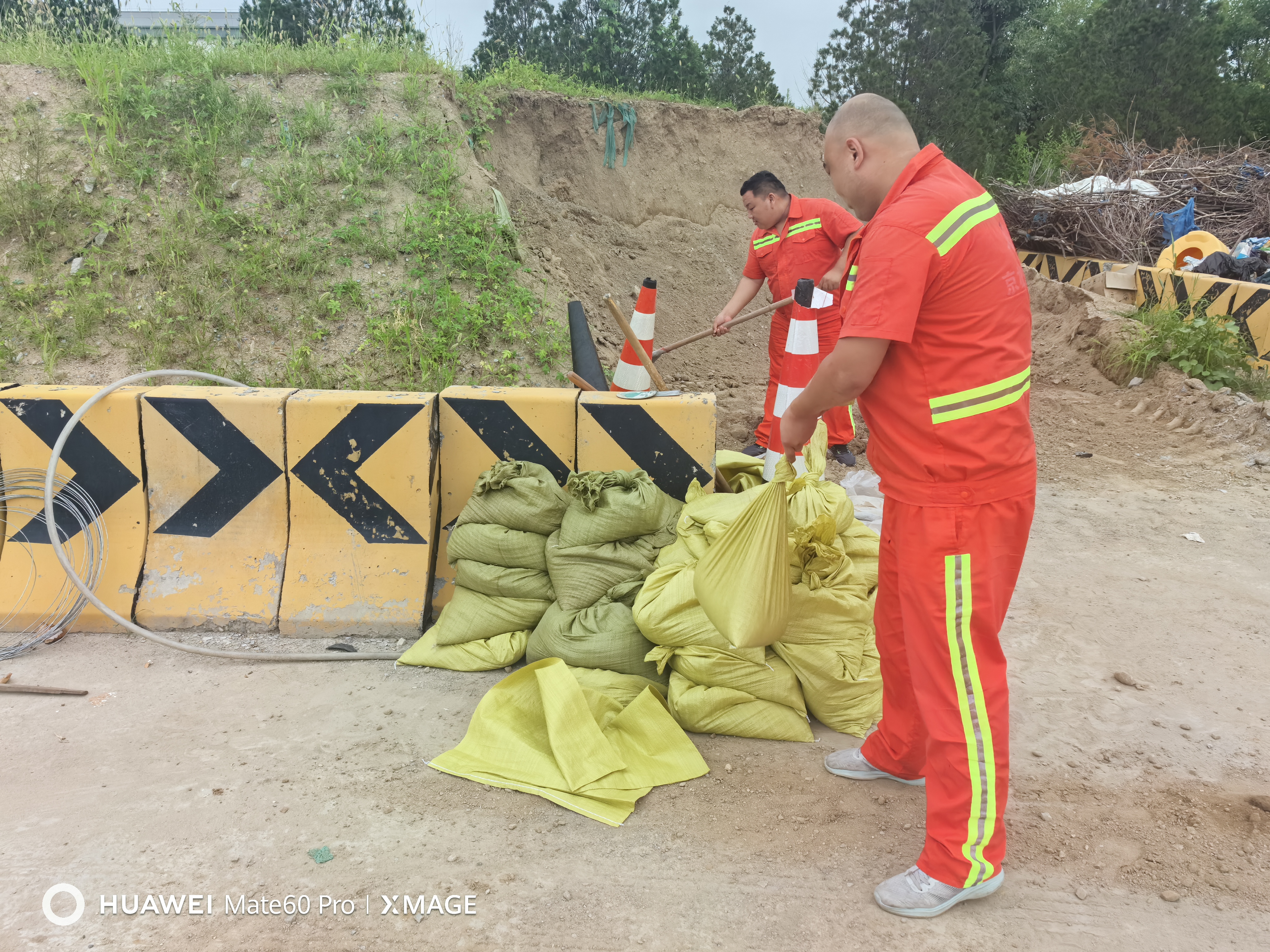 养护分公司雄安分中心固安养护队干部职工坚守防汛一线,成立一支防汛抢险应急队伍,24小时待命,随时做好防汛抢险的准备。这是防汛队伍正在补充防汛沙袋。