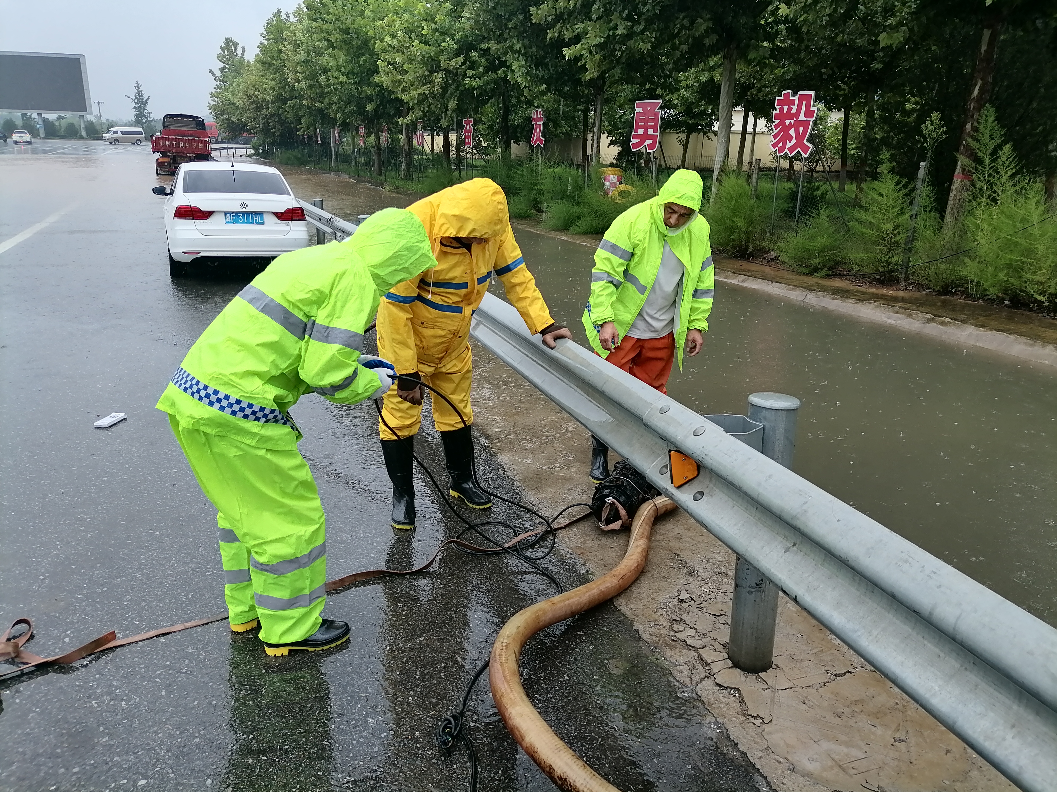 本次抽水作业共有9名员工参与,持续抽水作业达13小时,连续抽水量约1000立方。共计启动排水设施2套,后勤保障车1辆。在排水作业中,所有设备技术状况良好,人员配合默契,作业正常有序,收费广场路面始终保持通行状态。