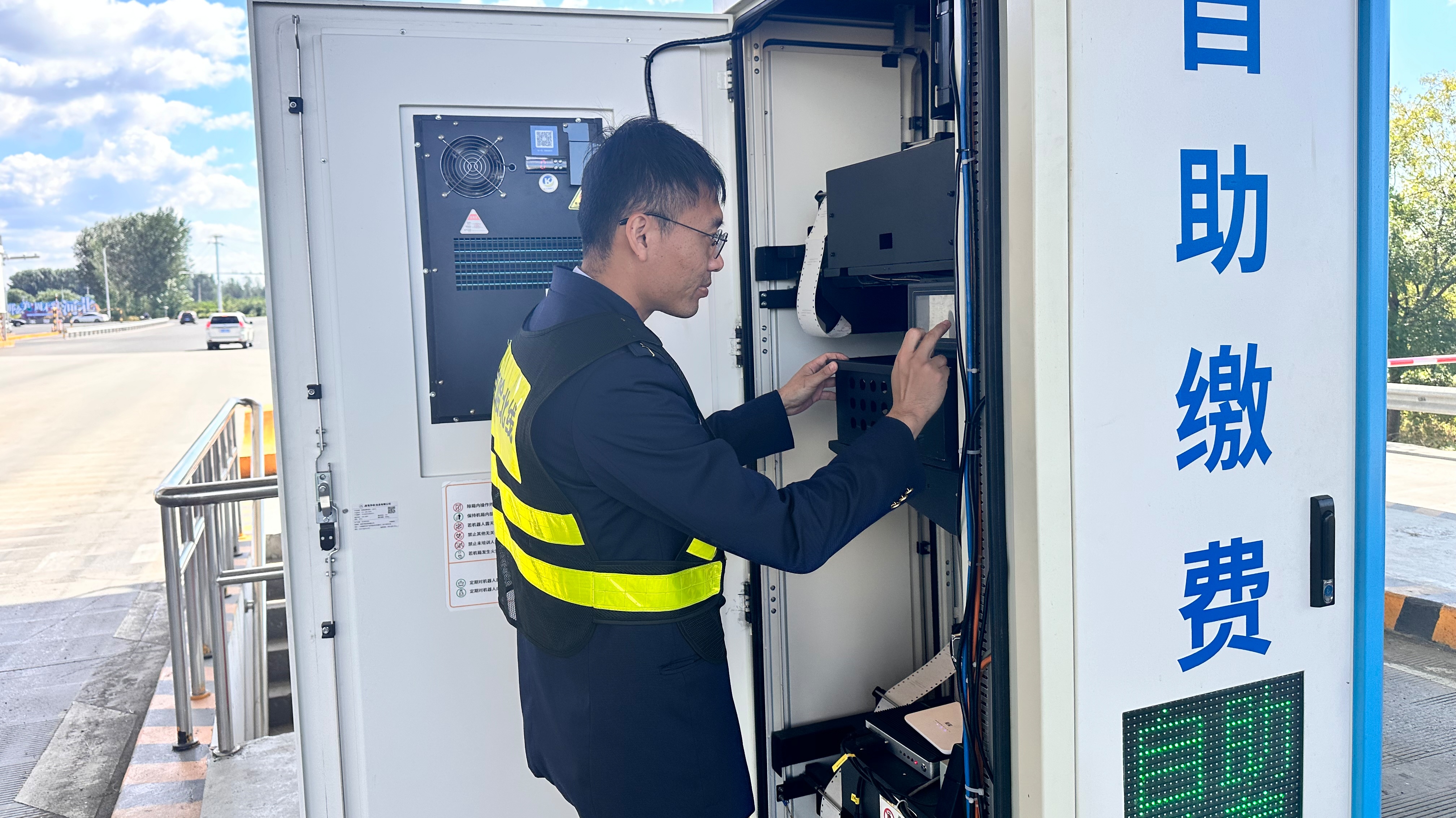 三是强化外场机电设备巡查。对道路沿线门架收费系统、外场监控系统、信息发布系统、光纤传输系统以及全线供电设施加强巡查。查看门架机柜空调、工控机、交换机等设备是否正常运行,排查门架天线、补光灯、抓拍相机等设备固定是否松动,将巡查中的问题进行记录汇总,并迅速进行维修处理,及时消除各类安全隐患。