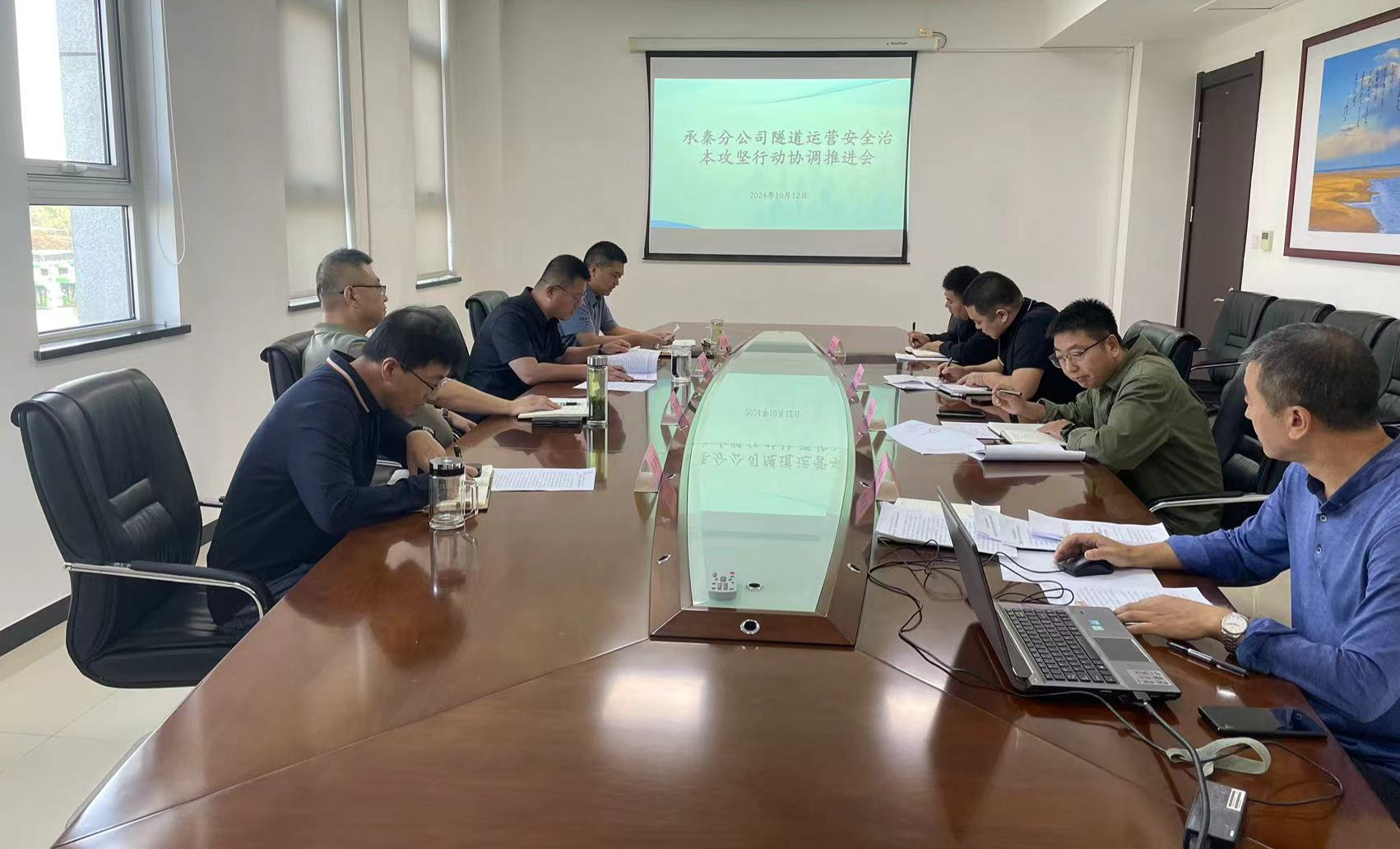 为全面落实集团公司隧道运营安全治本攻坚工作要求,承秦分公司高度重视隧道运营安全管理工作,10月12日上午,组织召开隧道运营安全治本攻坚行动协调推进会,分公司领导班子成员及相关单位部室负责人参加了此次会议。