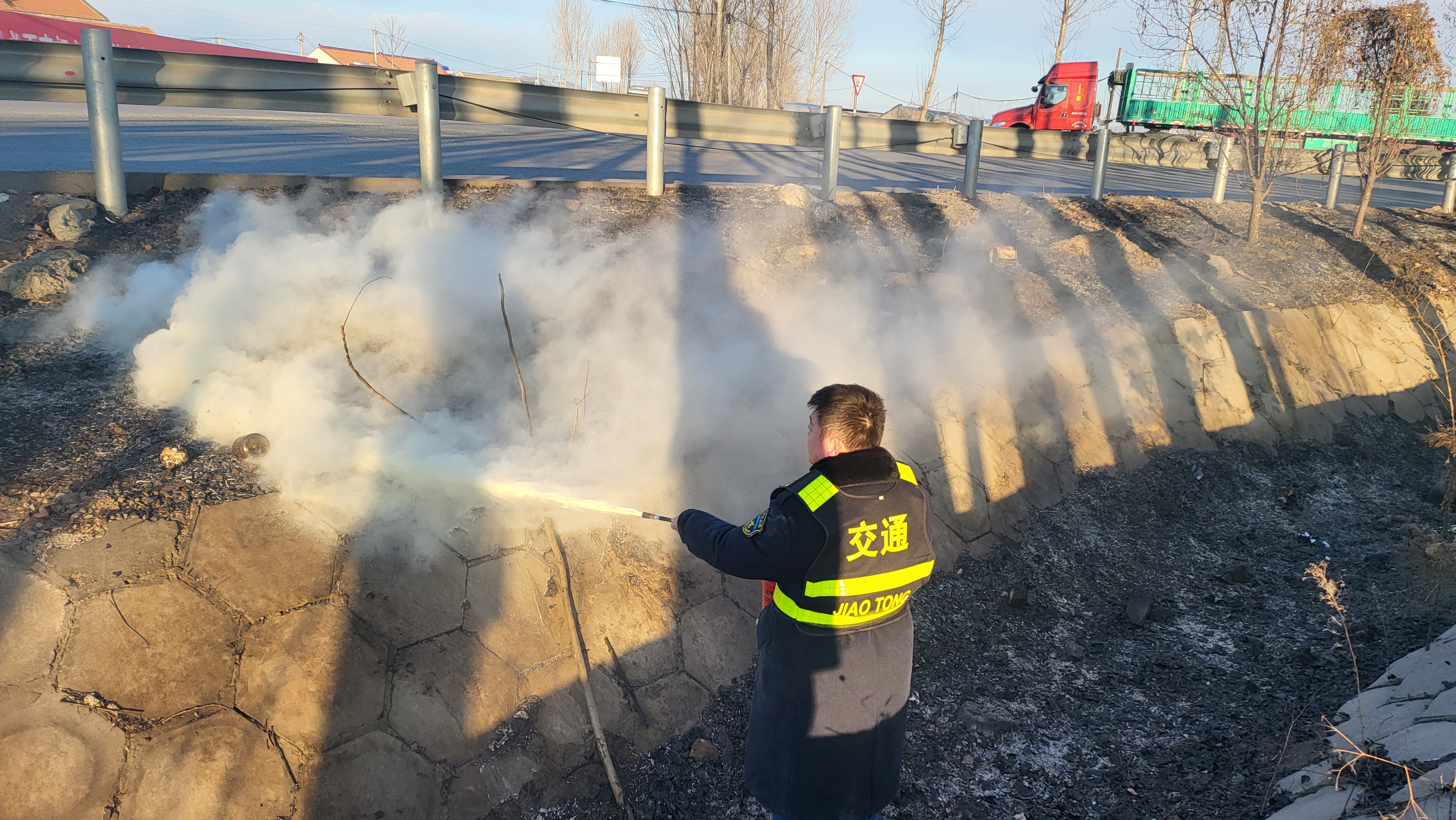 2月4日下午,平安城收费站收费班长在值岗期间,发现外广场与平东线交接边沟处产生大量白烟,疑似有火情出现,便立即赶往现场查看,发现平东线边沟发生火情,遂立即上报值班站长。