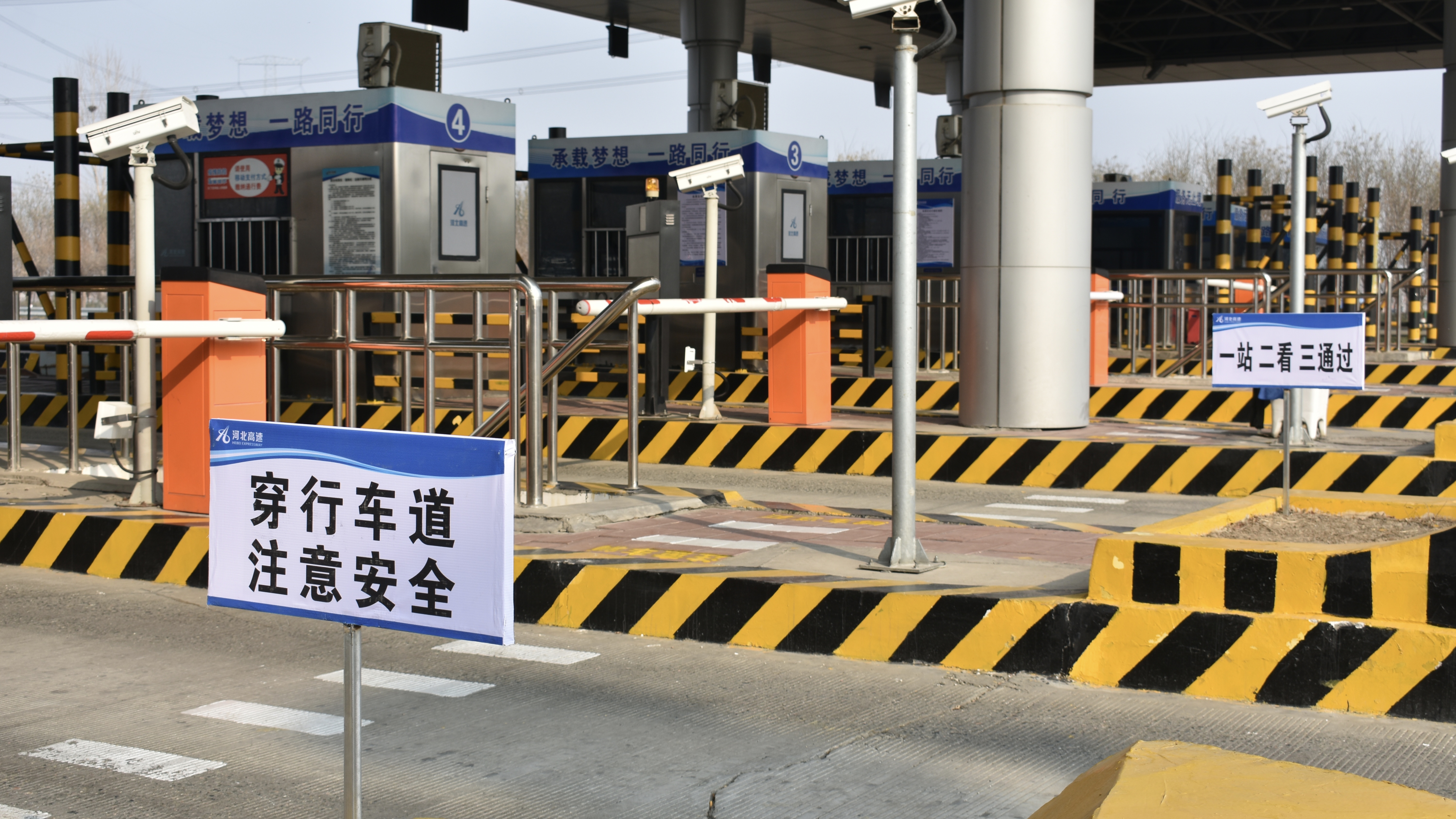 在职工日常需要横穿的车道地面上,玉田城西收费站喷涂了醒目的“注意车辆”警示标语。鲜艳的色彩搭配清晰的字体,十分引人注目,有效提高了职工在横穿车道时的警惕性。同时,在车道附近的显著位置摆放了安全提示牌,提示牌上写着“一站 二看 三通过”和“穿行车道 注意安全”,简洁明了的提示语为职工提供了明确的安全指引,时刻提醒职工横穿车道时要观察周围车辆的行驶情况,确保安全后再通过。