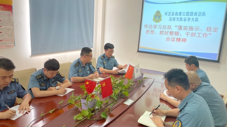 6月7日,总队召开了《落实指示、稳定思想、抓好整顿、干好工作》、《2021年党风廉政建设工作会议上的讲话》等会议。会后,川里大队在交接班会上组织全员深入学习,要求认真贯彻落实上级领导的讲话精神。 会上,大队...[详细]