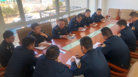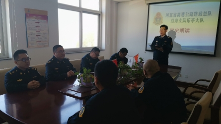 4月18日,沿海支队乐亭大队组织全体在岗人员传达学习丰海龄总队长在总队党史学习教育动员会上的讲话。[详细]
