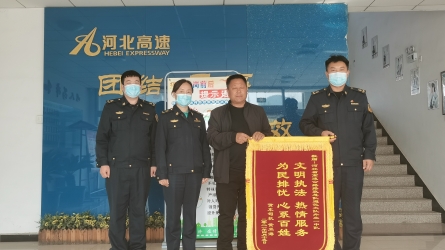 4月19日下午,遵化路政大队因快速处置一起损坏路产的交通事故,收到当事人黄术海赠送的一面“文明执法,热情服务;为民排忧,心系百姓。”的锦旗。[详细]