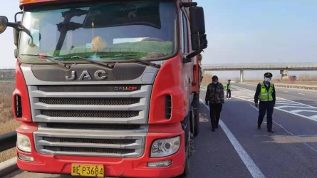 2月4日上午,沿海支队乐亭大队外业三中队路政队员郑一强、孙行正在日常巡逻工作中,10时10分巡逻至沿海高速公路天津方向K75公里时,看见旁边正在行驶一辆大型半挂牵引货车写有“湖北咸宁为冀加油红色字样条幅。[详细]