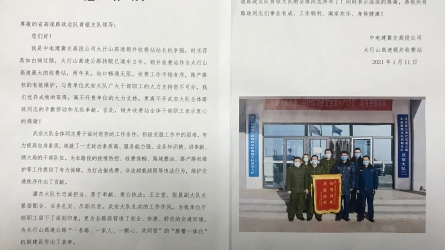 2月2日,一位王先生从保定将一个快递邮寄到了河北省高速公路路政宣大支队崇礼大队,打开一看,一面印有“路政为民、助力三农”的鲜红锦旗映现在路政队员面前,经过询问得知,原来是外业四中队热心帮助过他。[详细]
